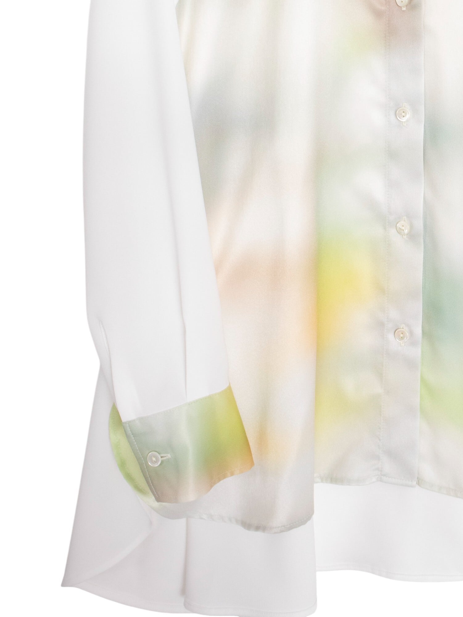 25AWのテーマであるオーロラをイメージしたオリジナルプリントが幻想的なブラウス。