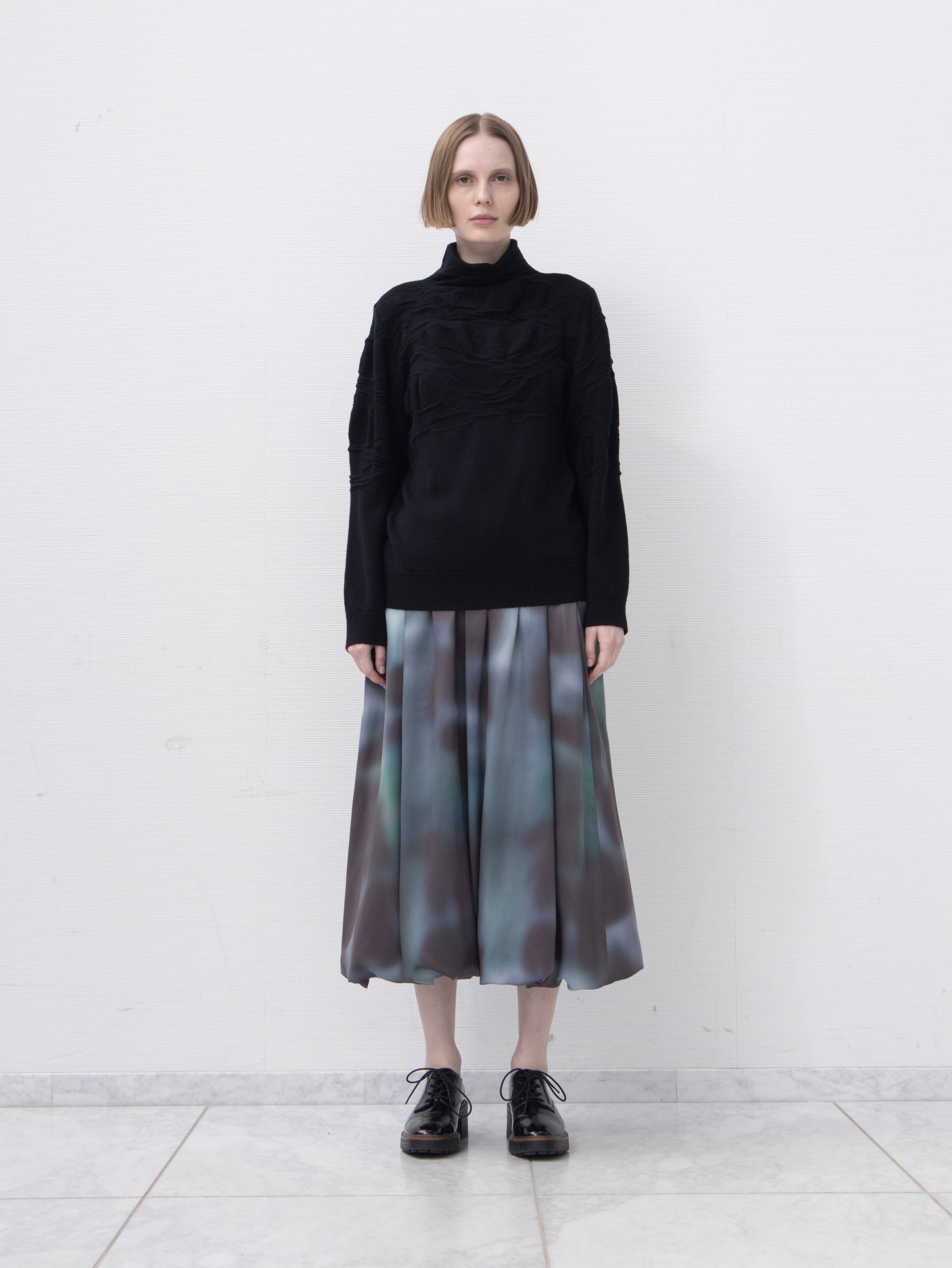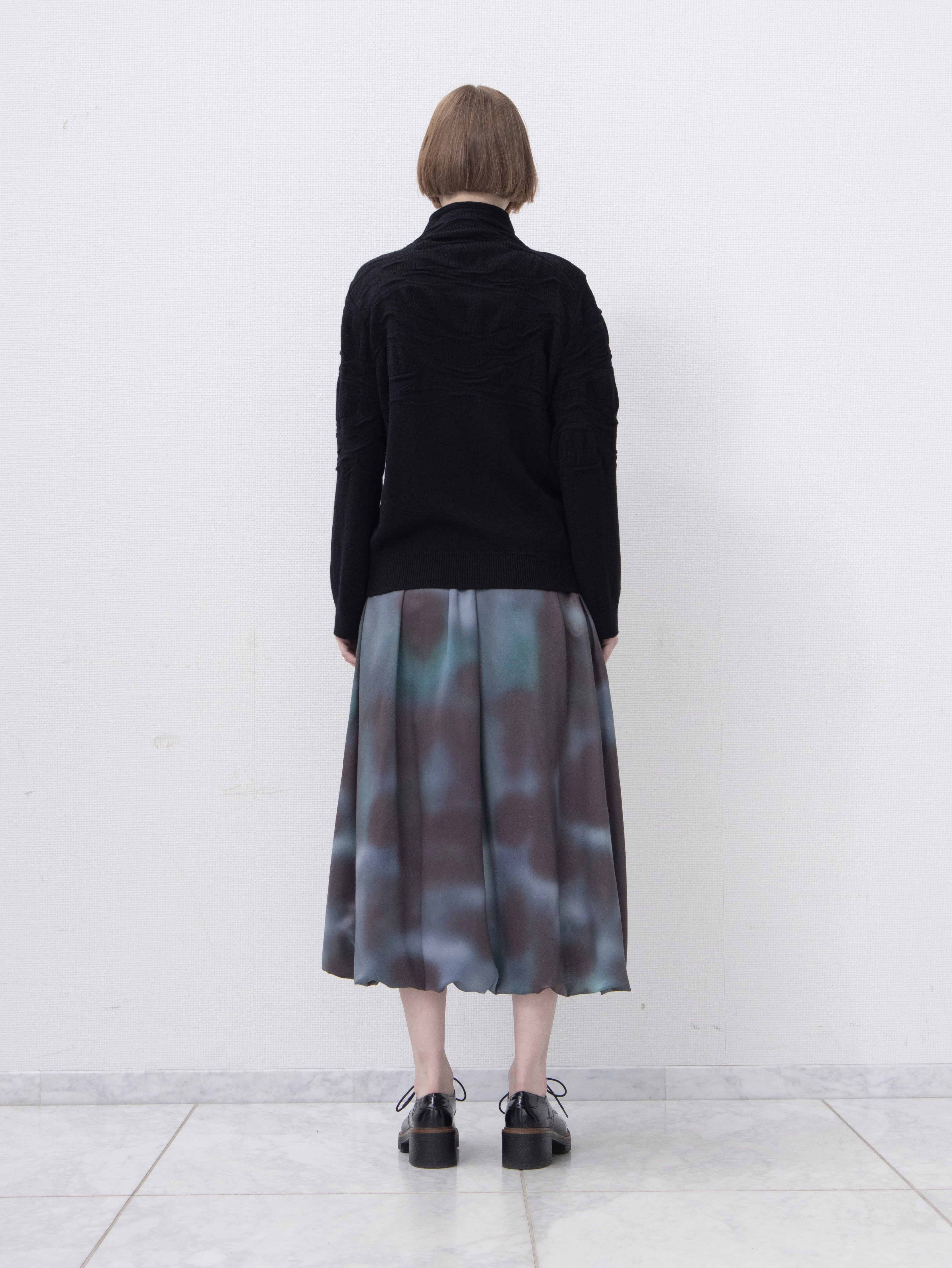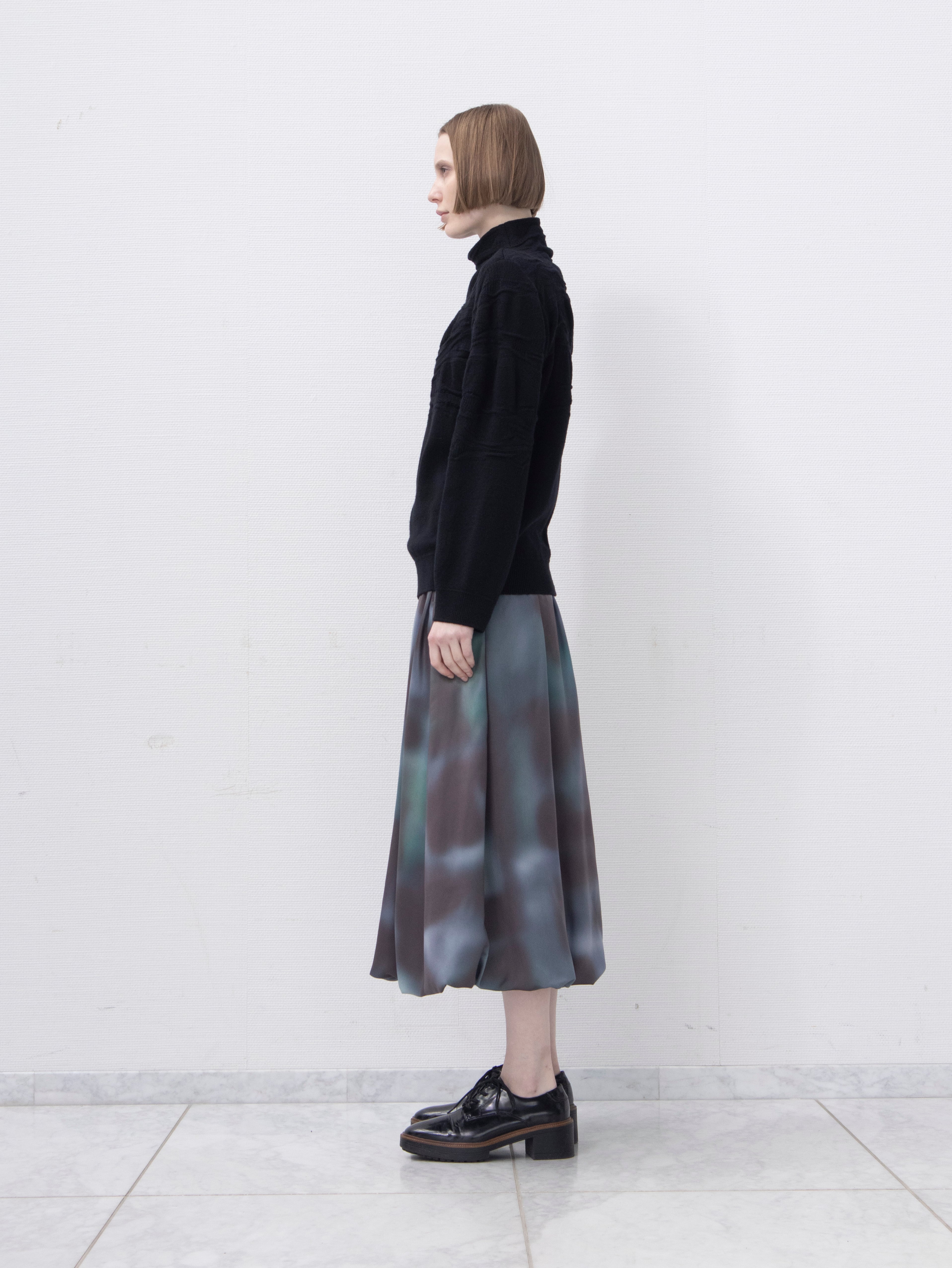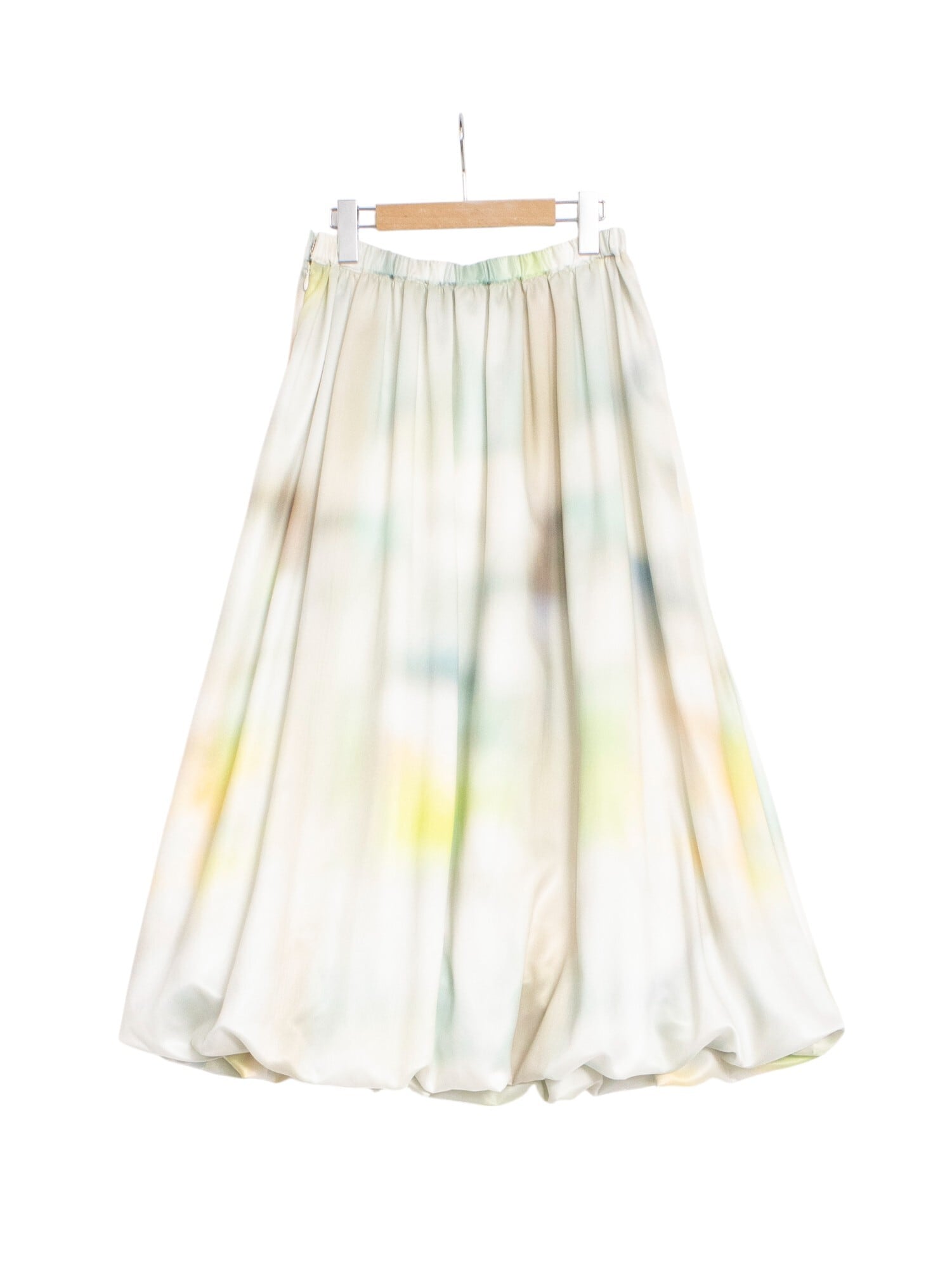 25AWのテーマであるオーロラをイメージしたオリジナルプリントが幻想的なバルーンスカート。
