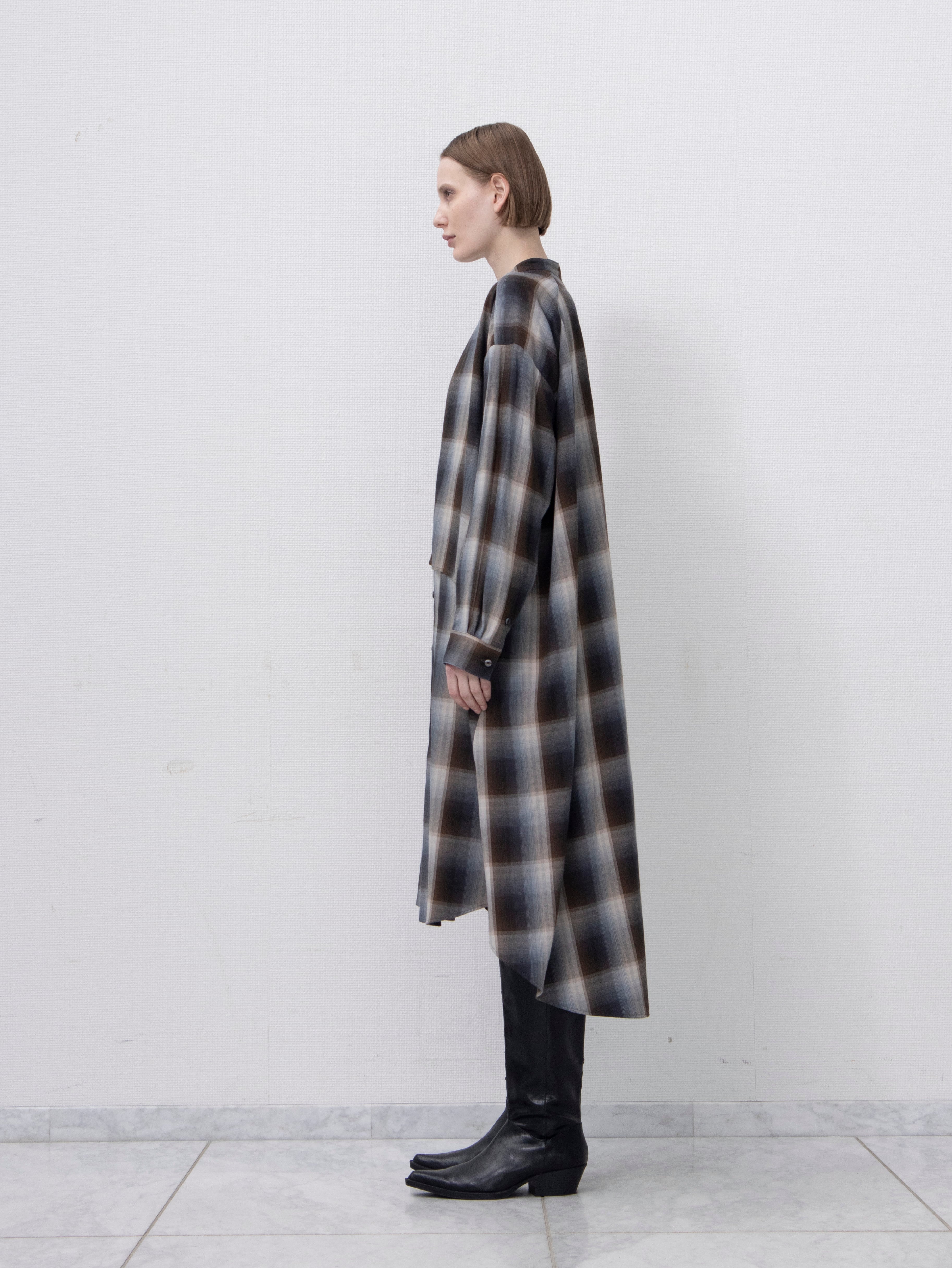 オンブレチェックが特徴的な表情豊かなロングシャツワンピース。