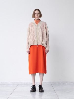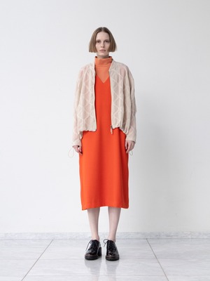 メッシュ素材ならではの透け感が、軽やかな印象を与え、色物のニットなどととのレイヤードを引き立てます。