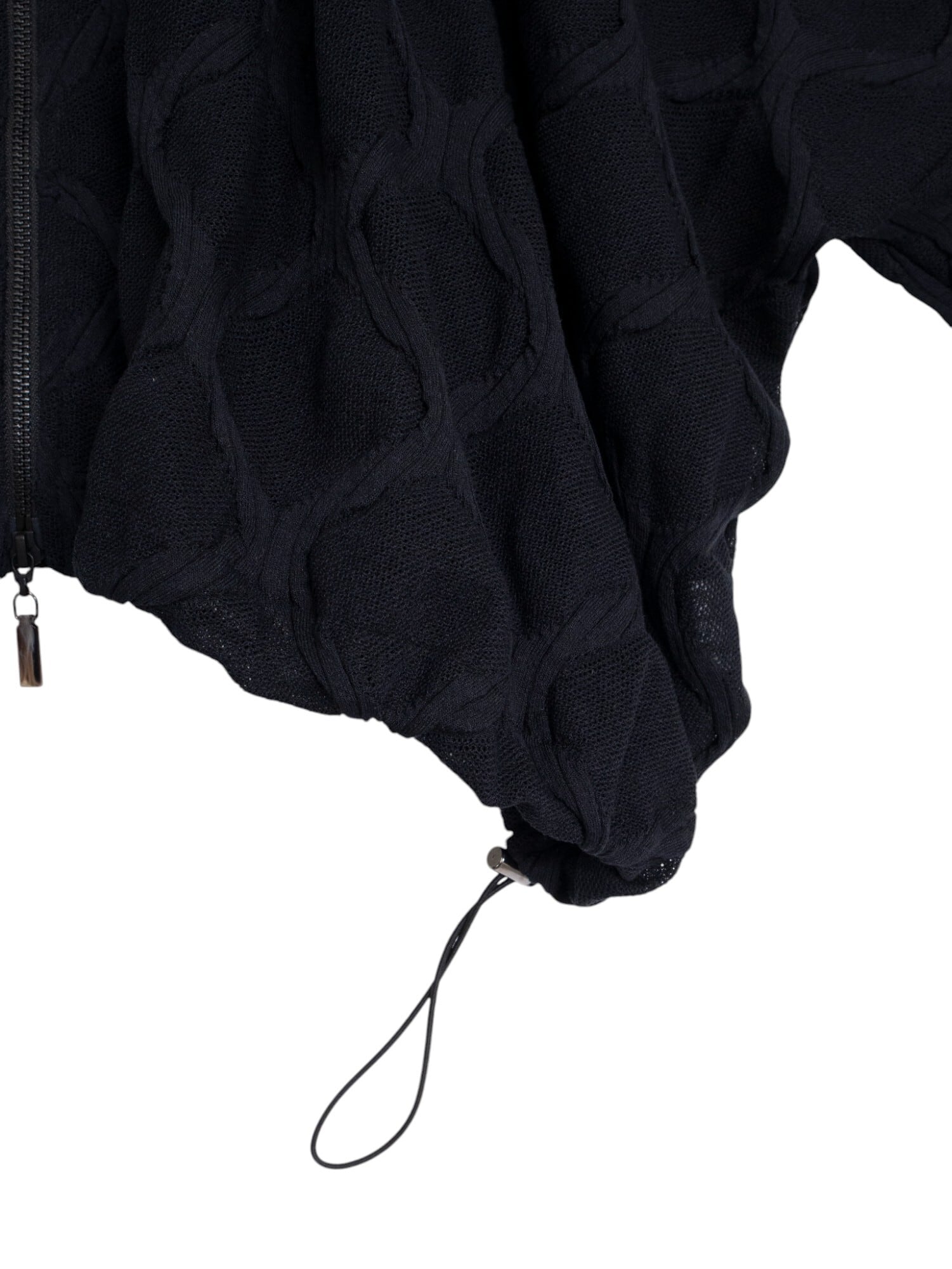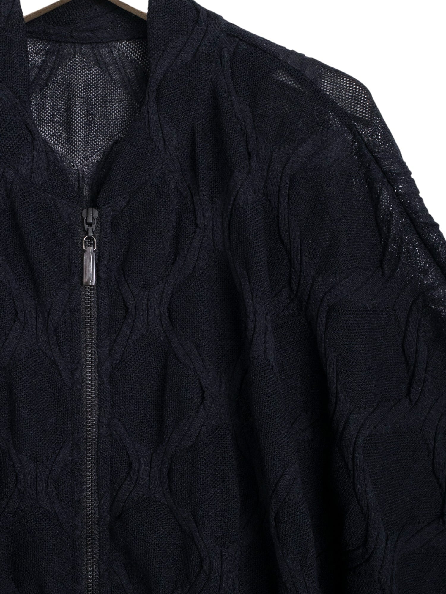 大胆な幾何学模様が特徴的なニットジャガードブルゾン。