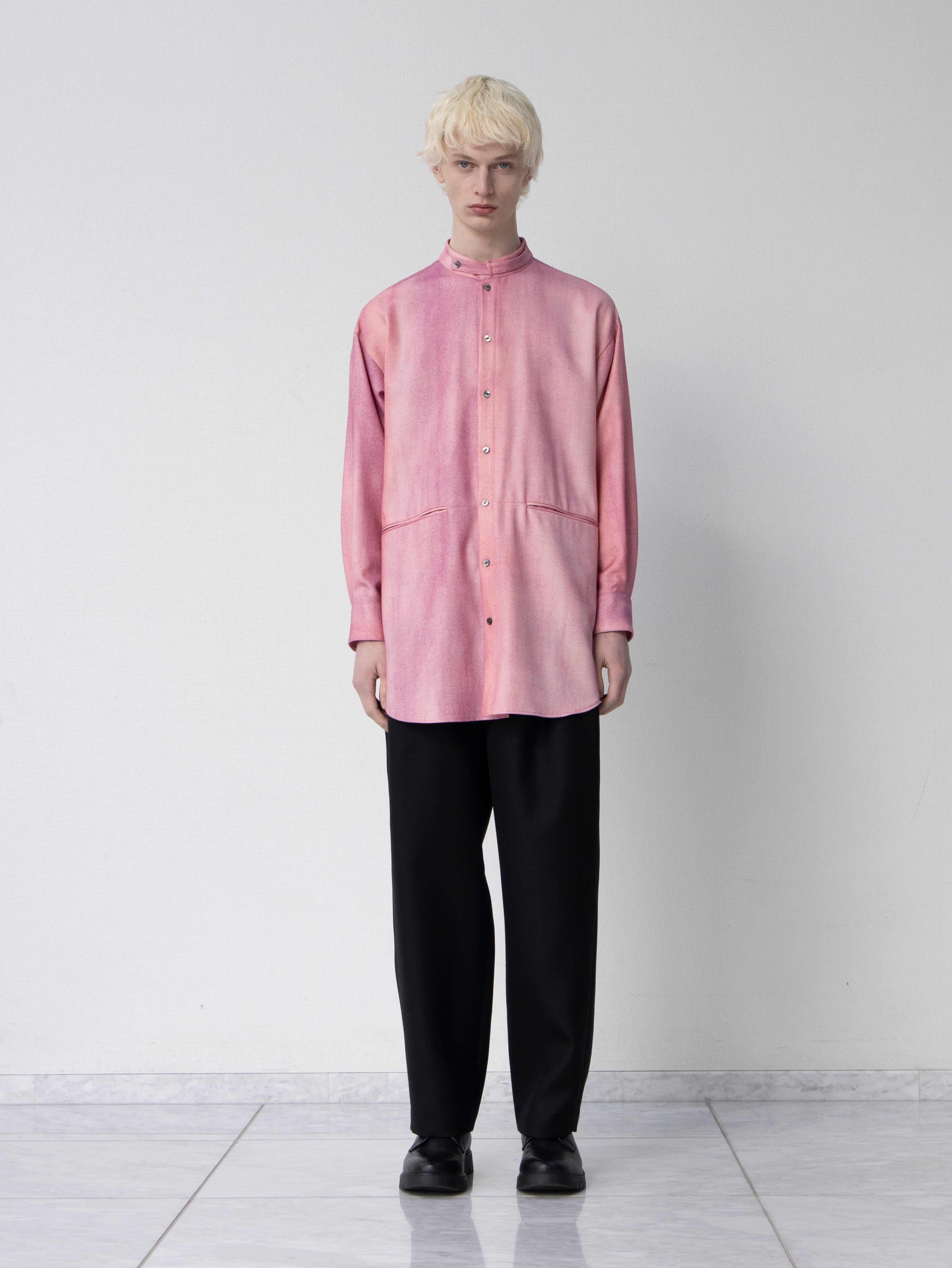 25AWのテーマであるオーロラのイメージを、職人の手仕事による美しいグラデーションで表現したロングシャツ。