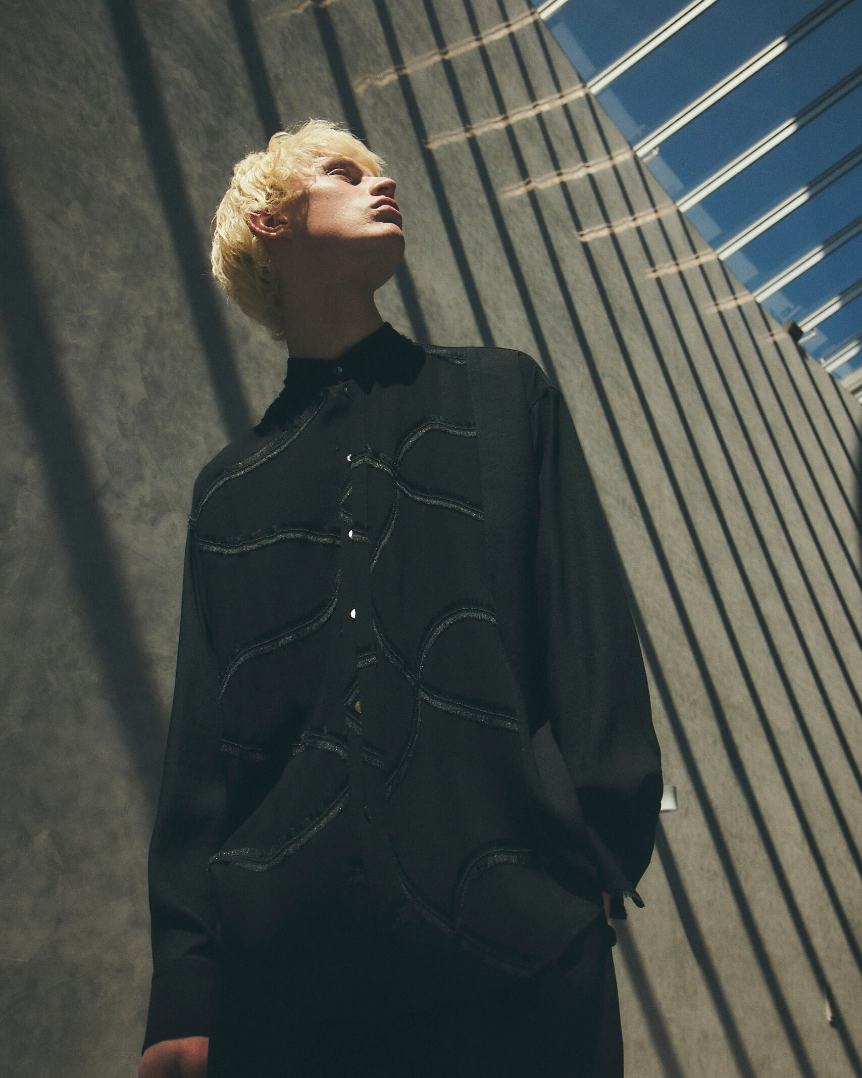 オリジナルのカットジャガード生地は、レーヨンならではのドレープ感と上品な光沢が魅力です。