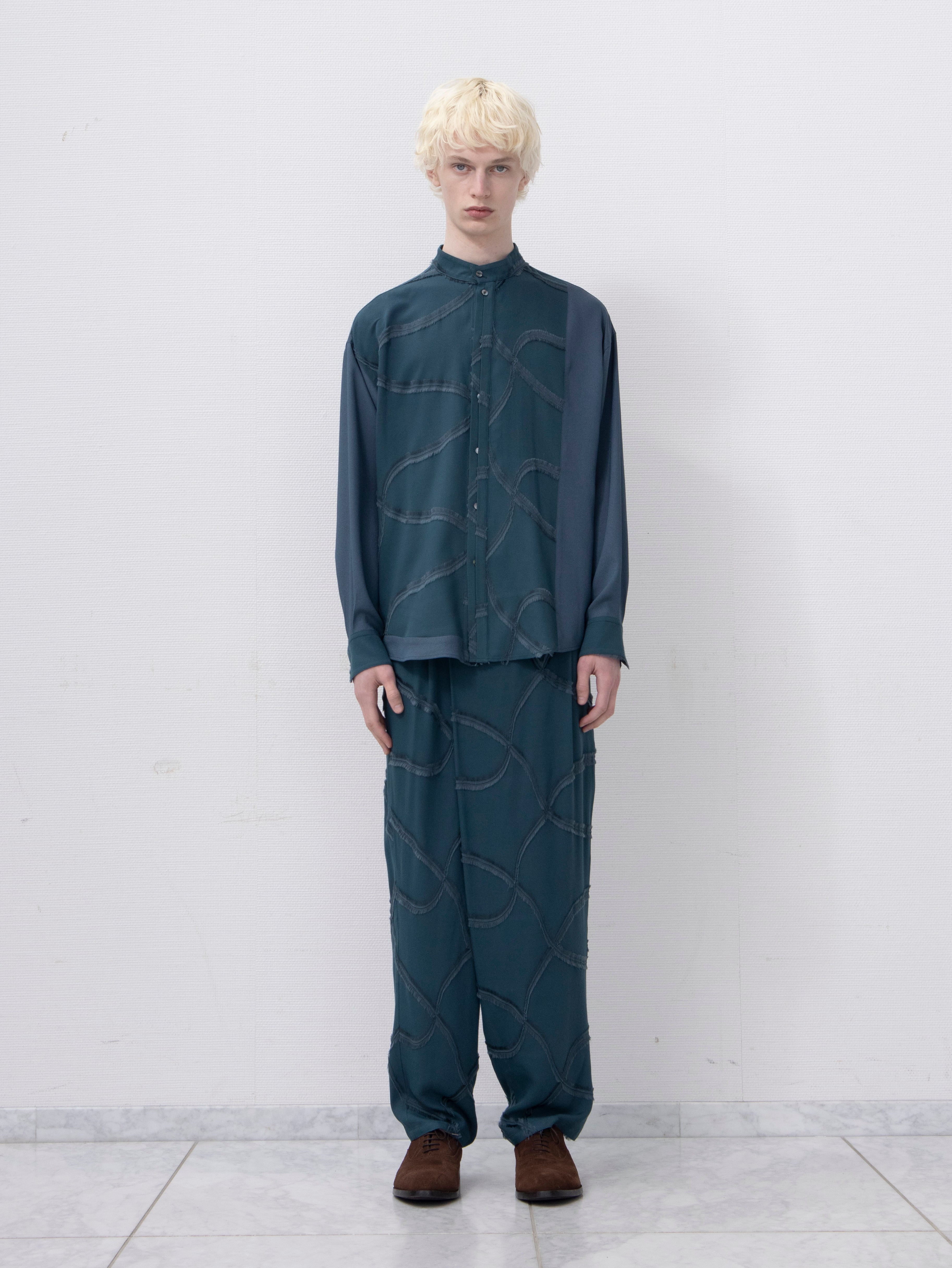 さざ波をイメージした幾何学模様が美しい、アシンメトリーテーパードパンツ。