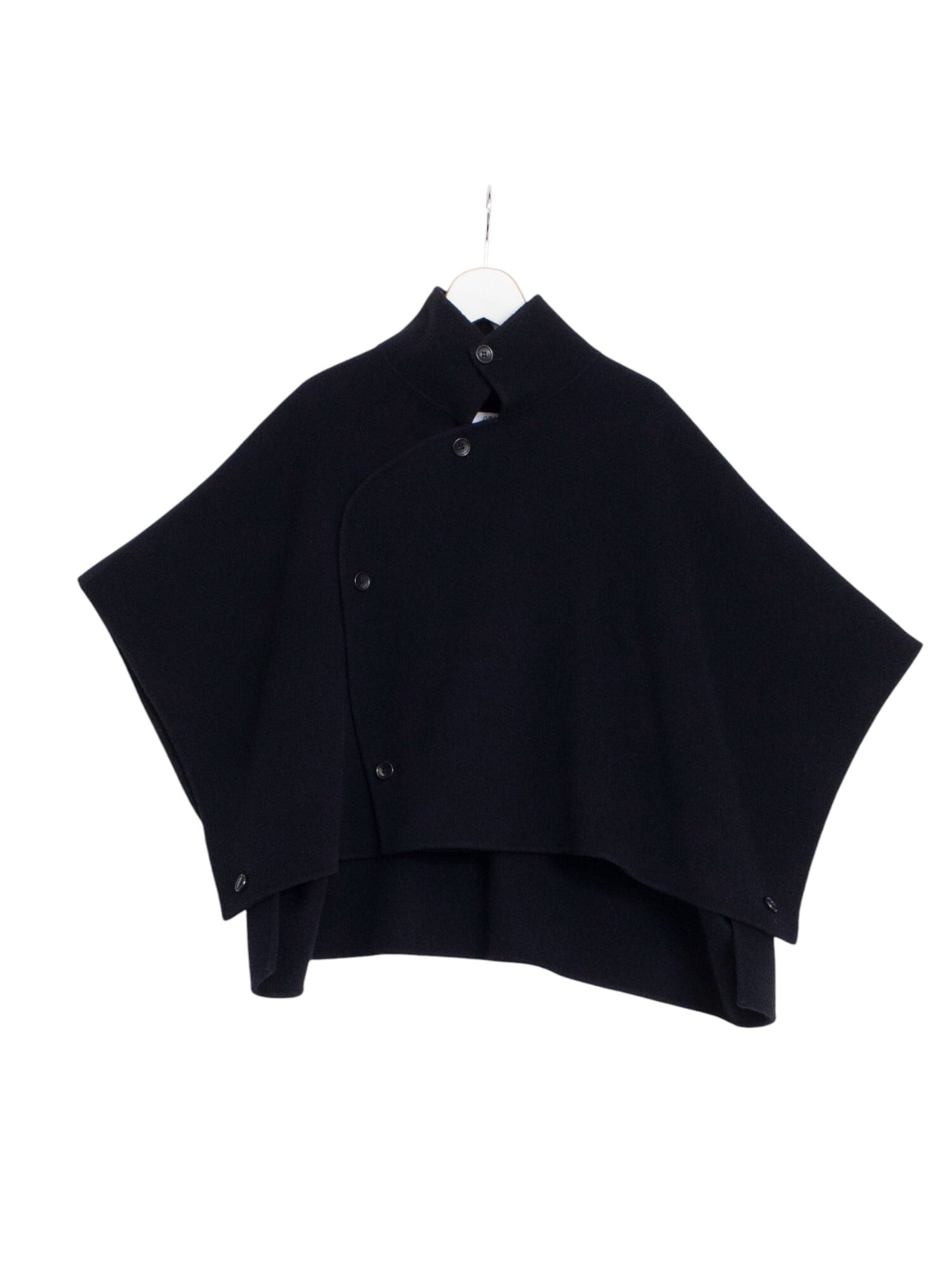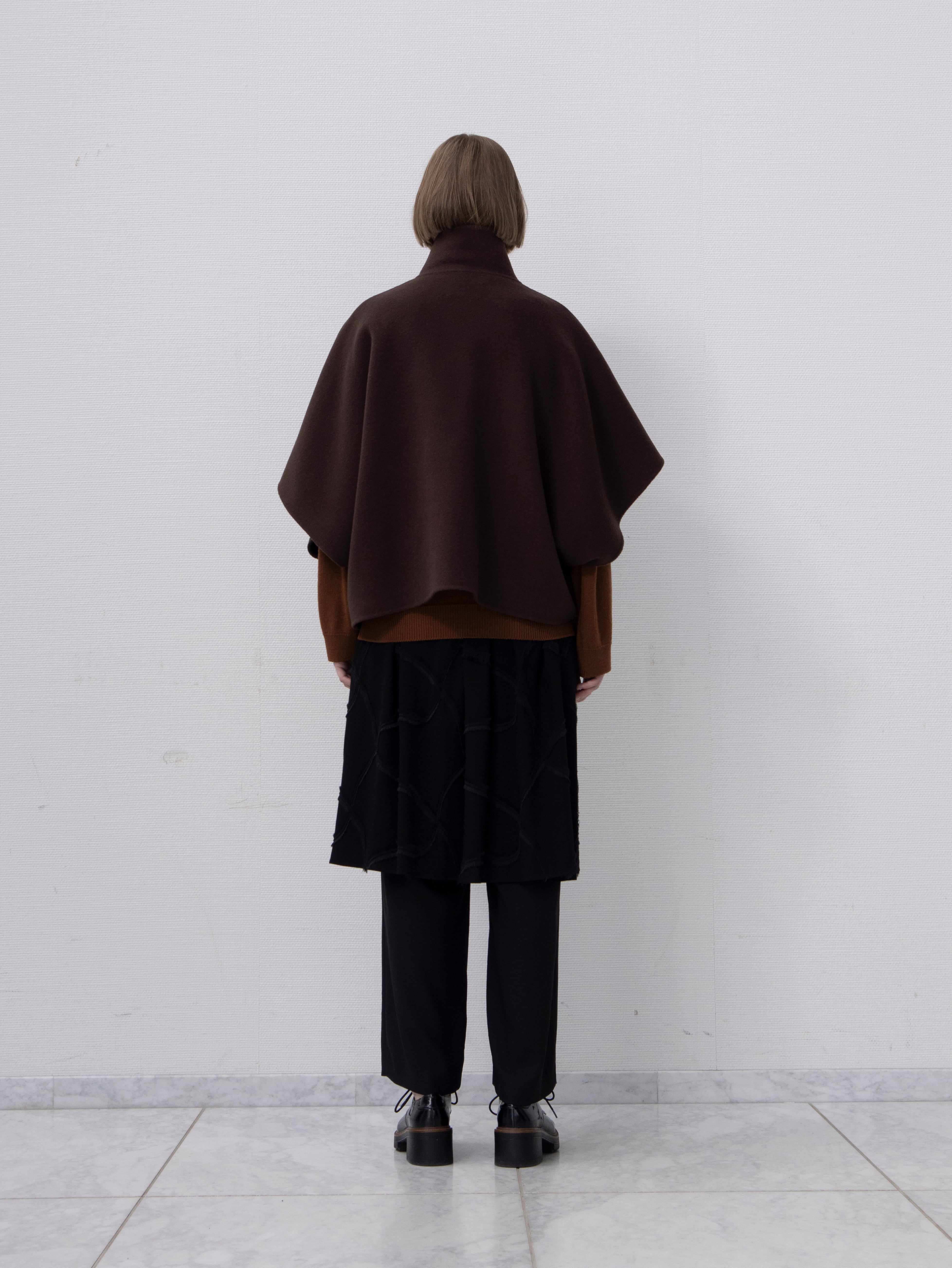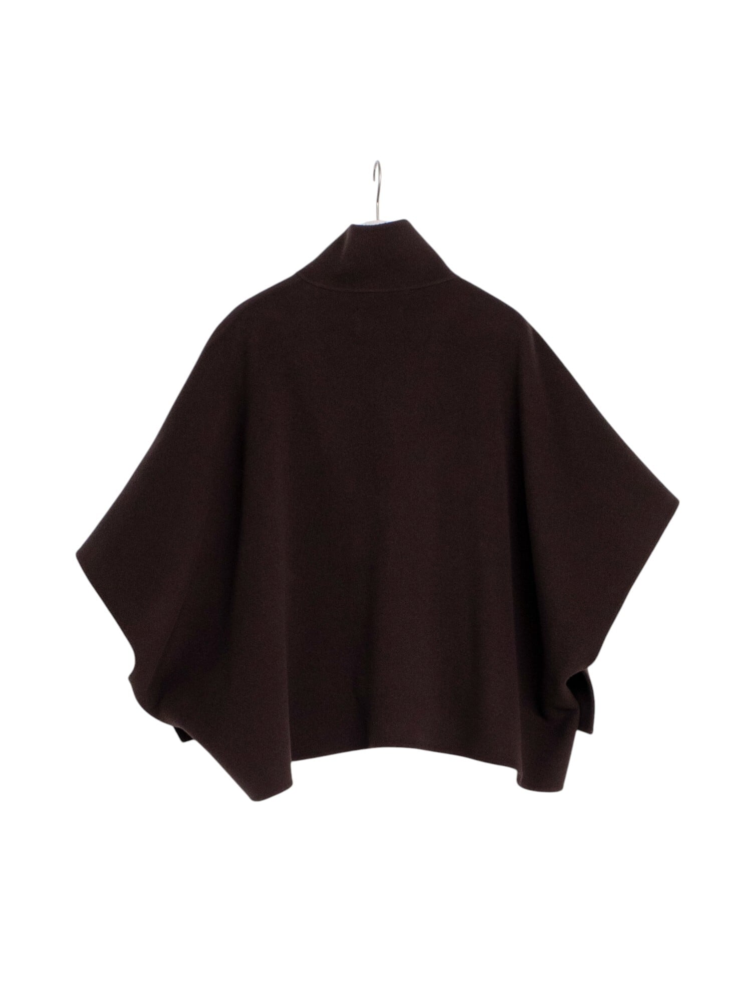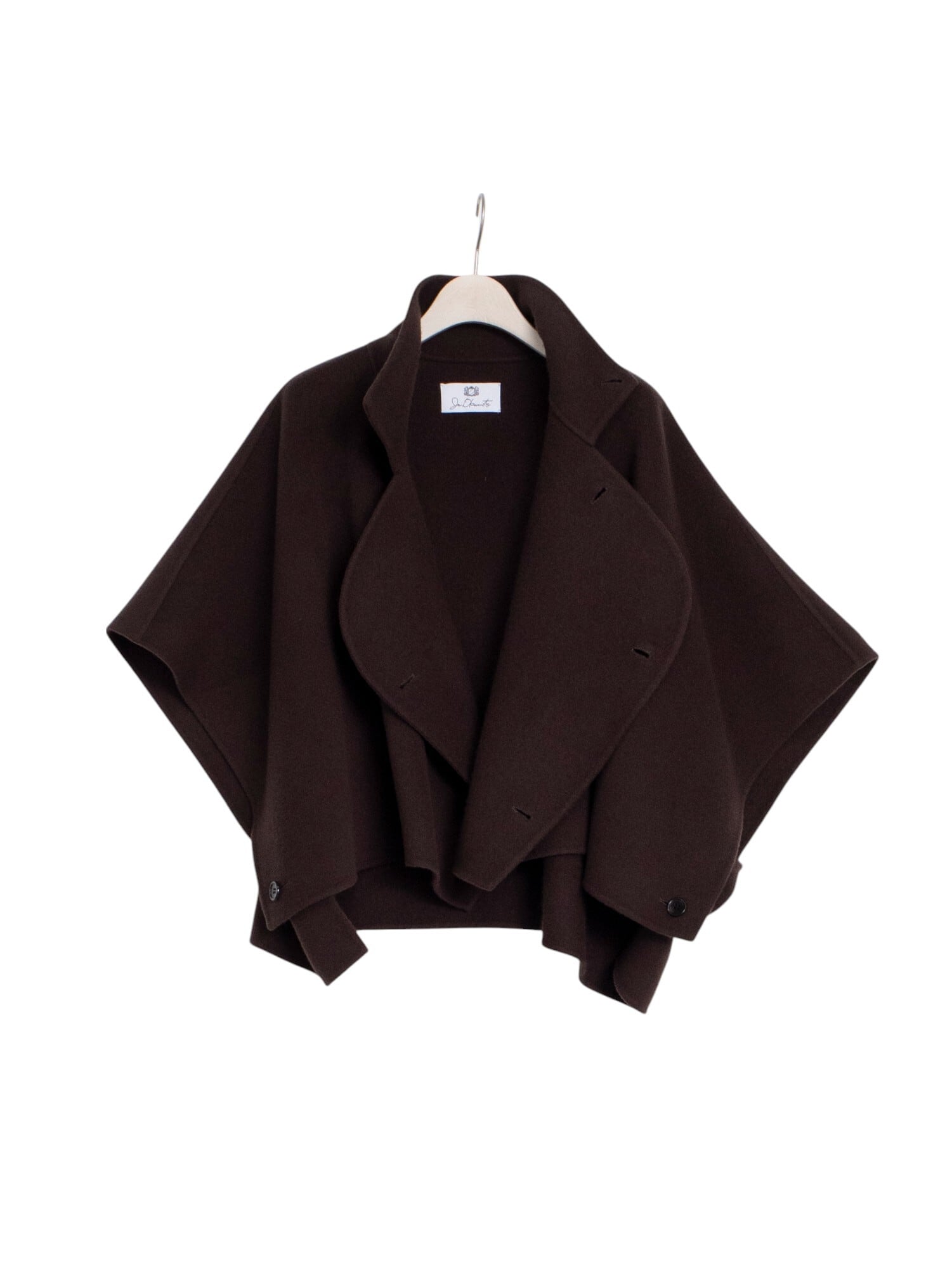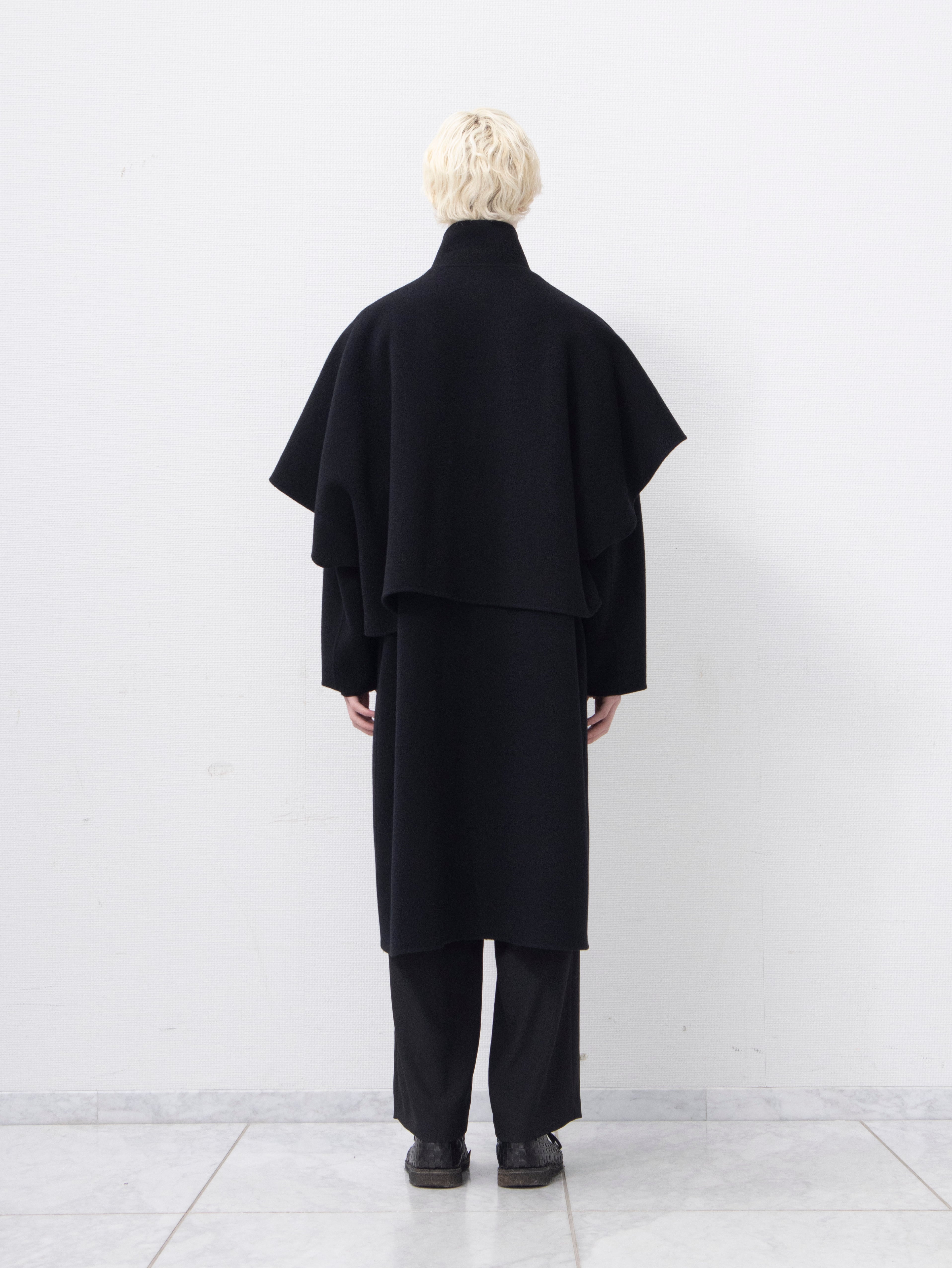 ウールの中で一番綺麗で高価なフリース部分から採れる、希少性の高いPure Super 100のラムウールを使用した、贅沢なリバー仕立てのケープコート。