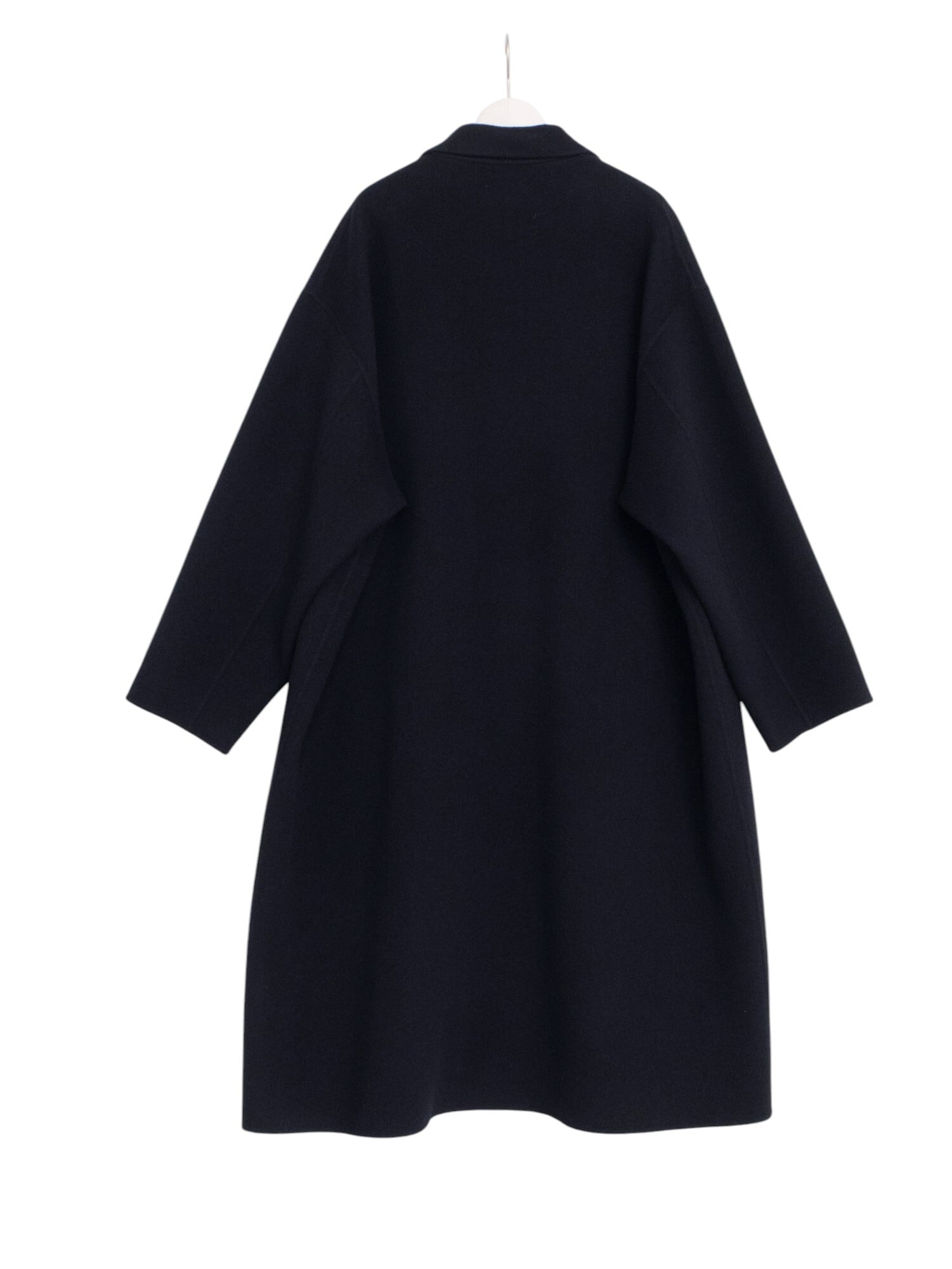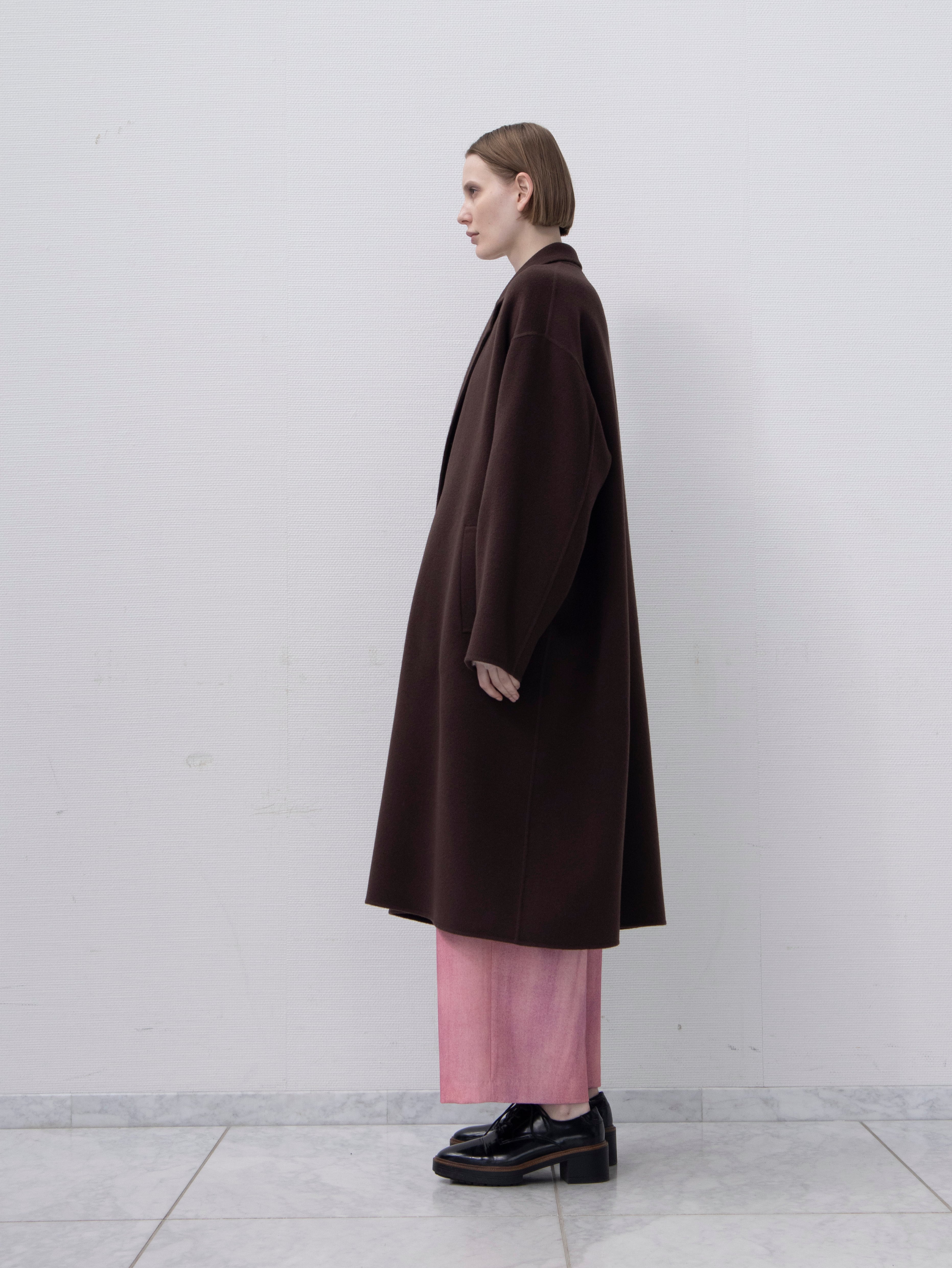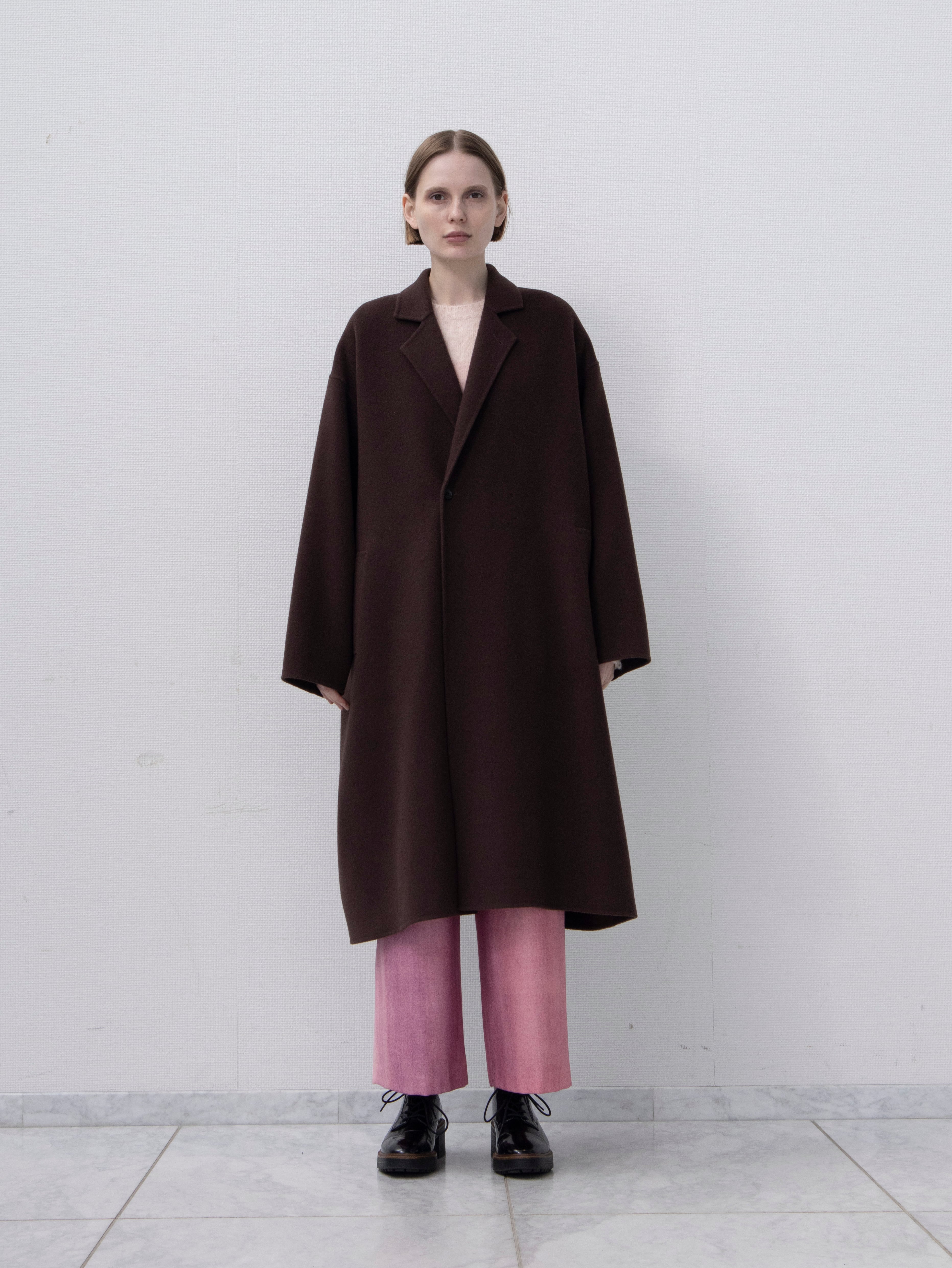ウールの中で一番綺麗で高価なフリース部分から採れる、希少性の高いPure Super 100のラムウールを使用した、贅沢なリバー仕立てのコート。