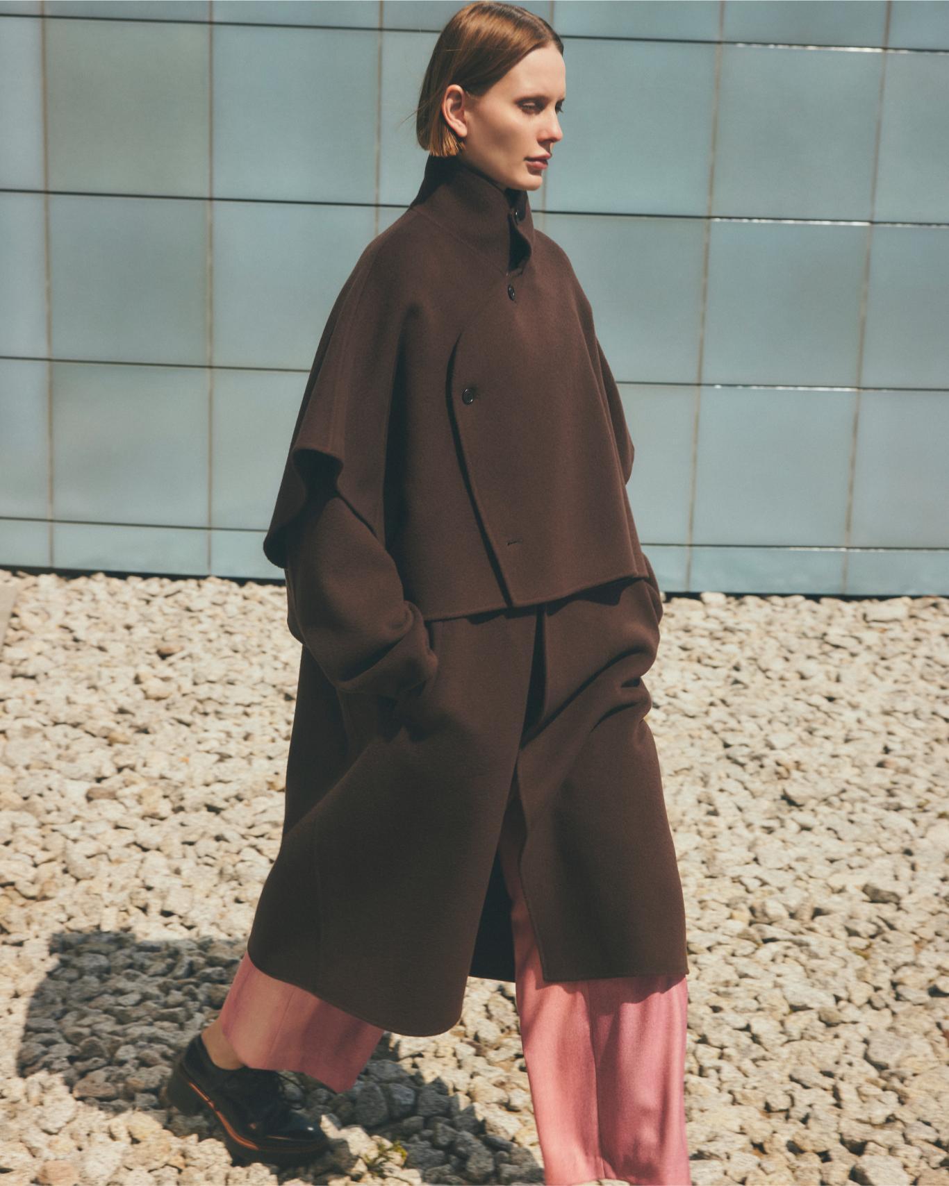 ウールの中で一番綺麗で高価なフリース部分から採れる、希少性の高いPure Super 100のラムウールを使用した、贅沢なリバー仕立てのコート。