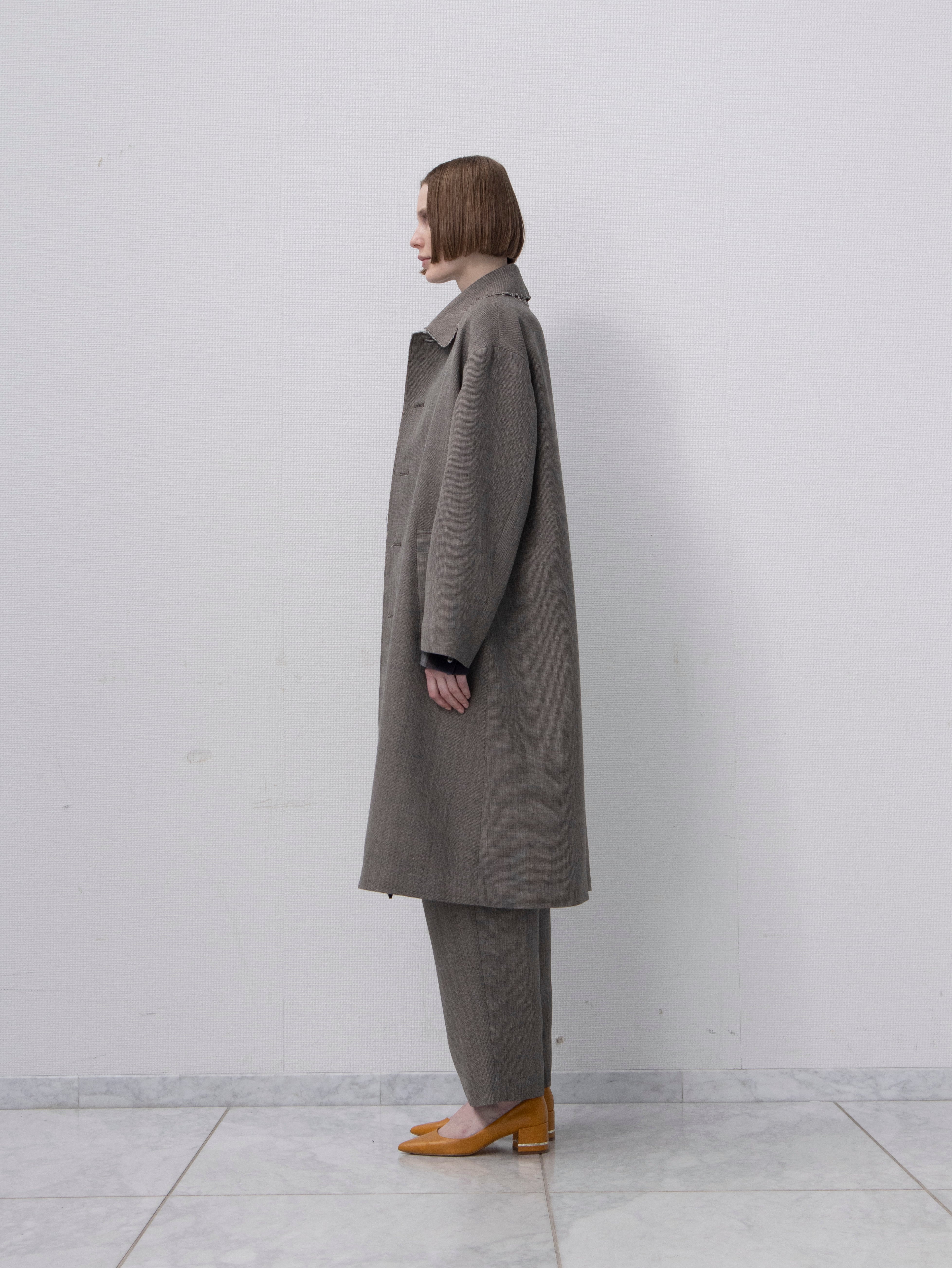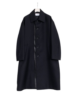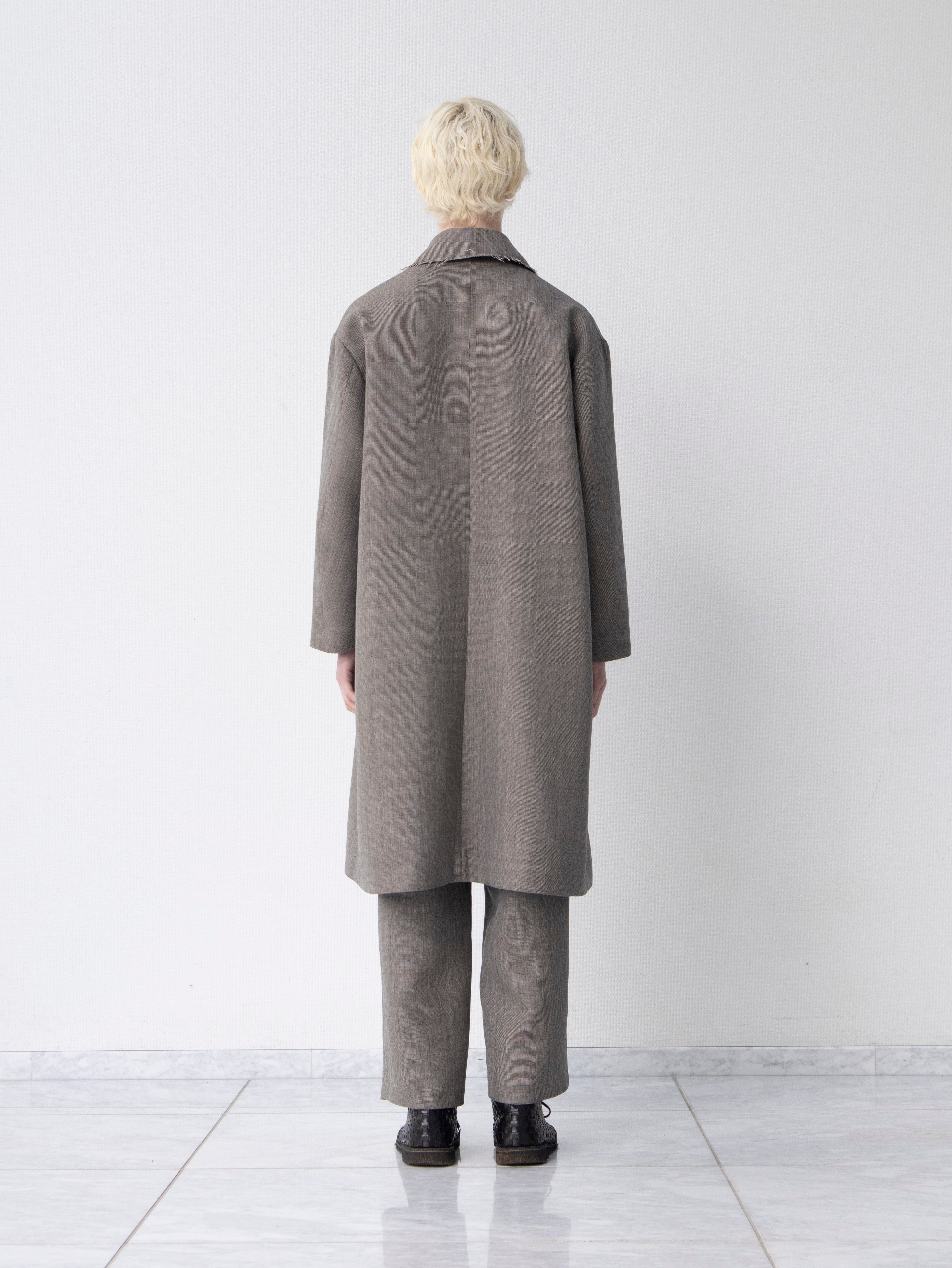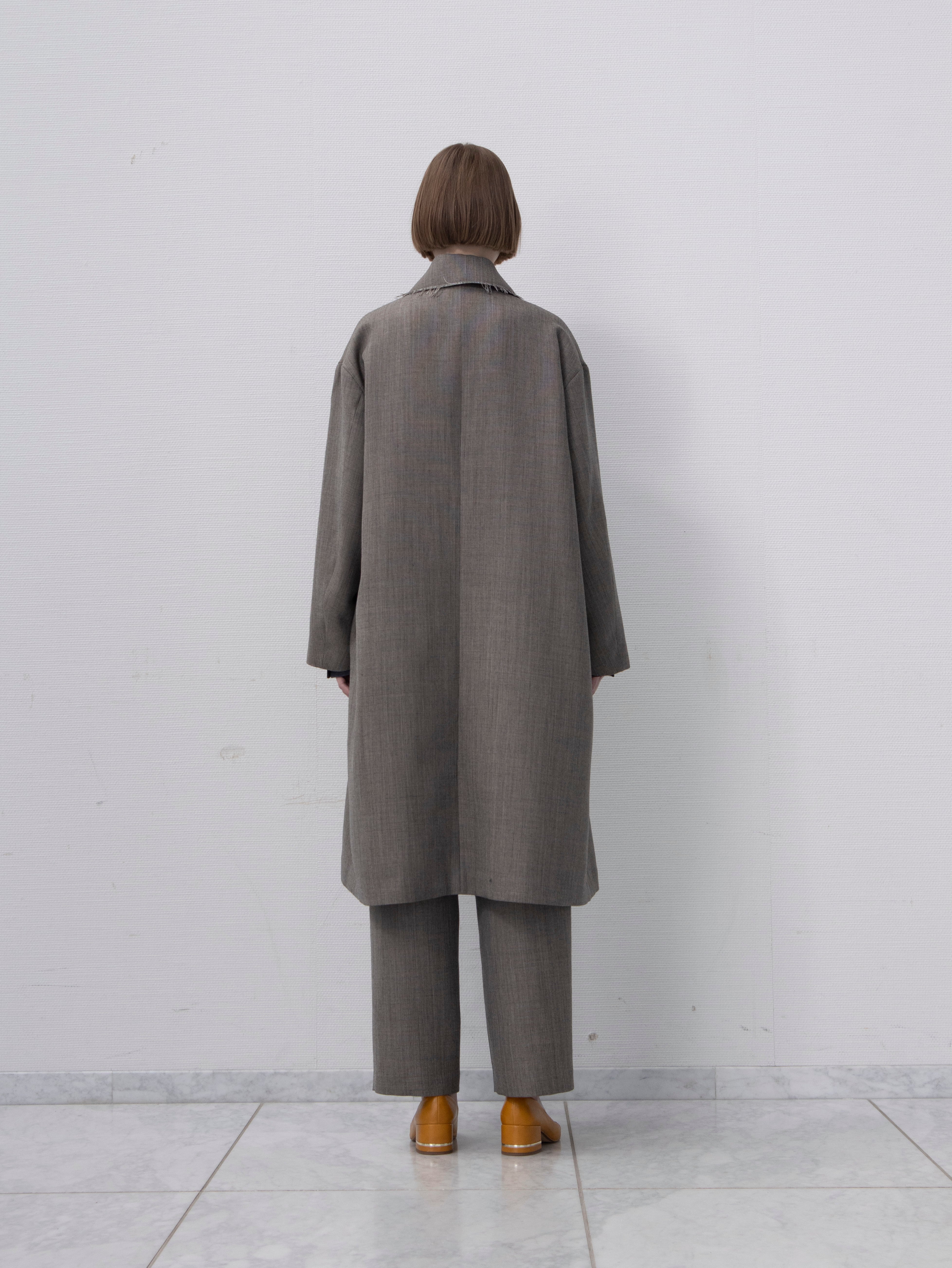 梳毛のシャークスキンリバー素材を贅沢に使用したロングコート。