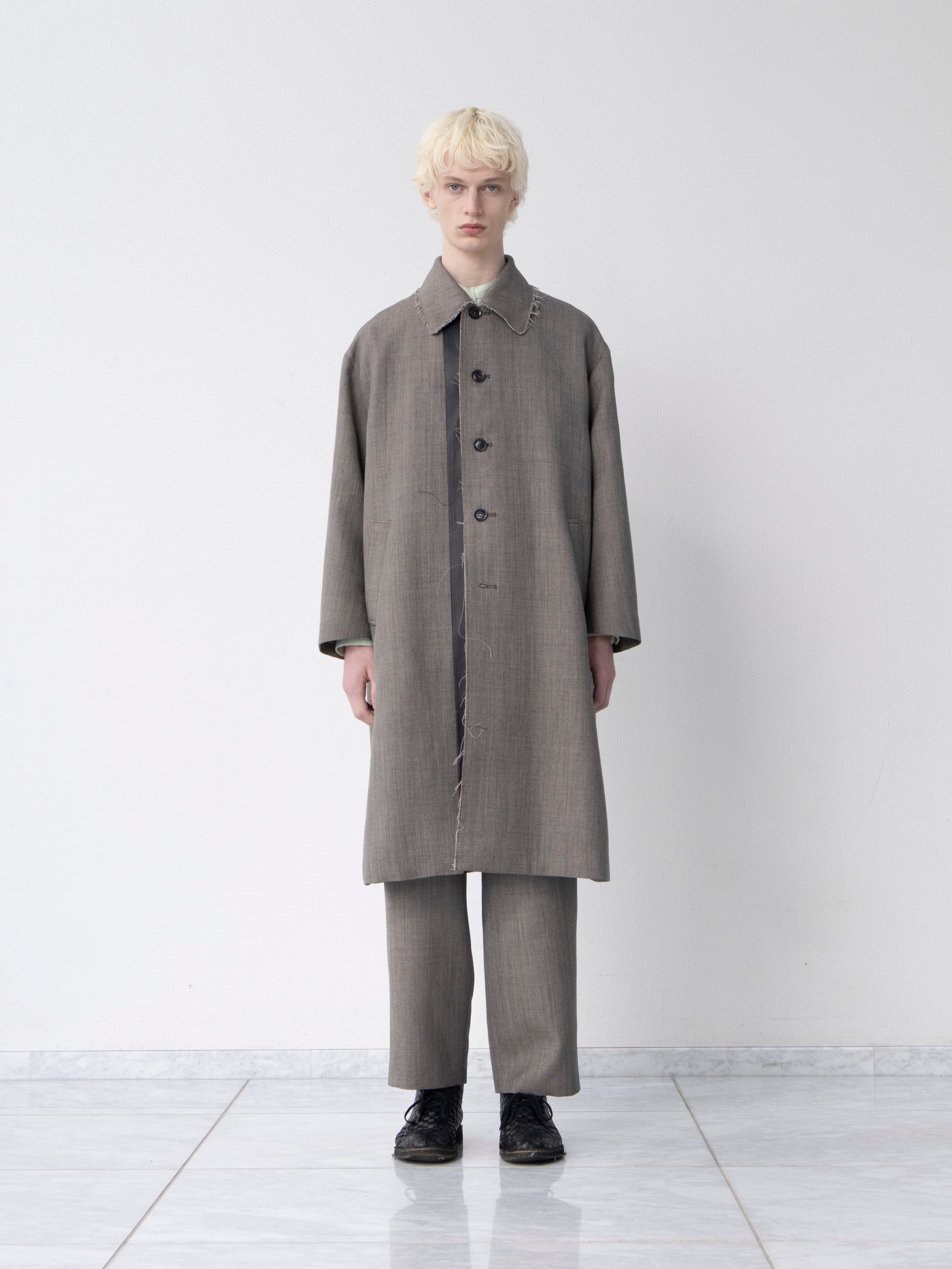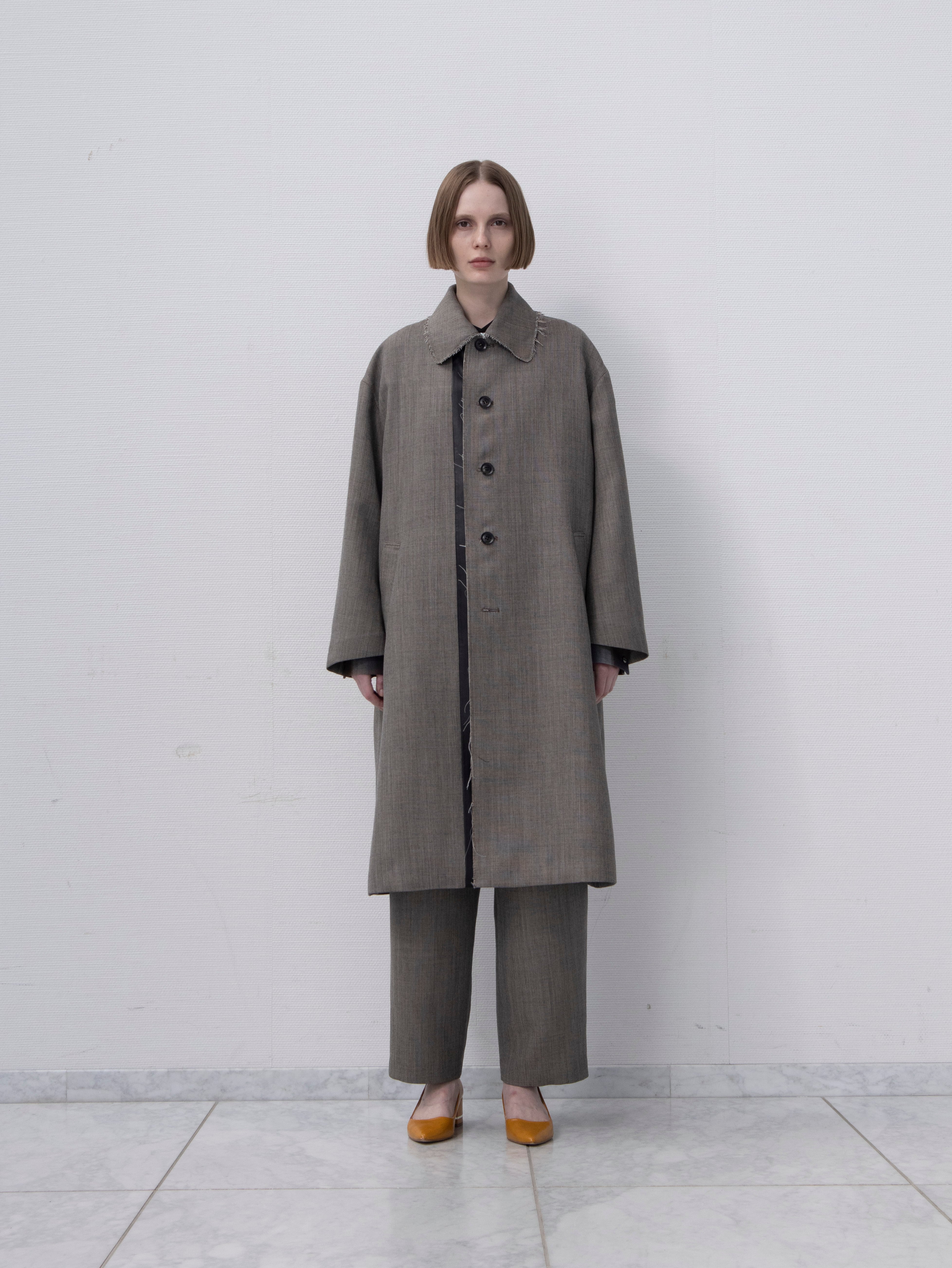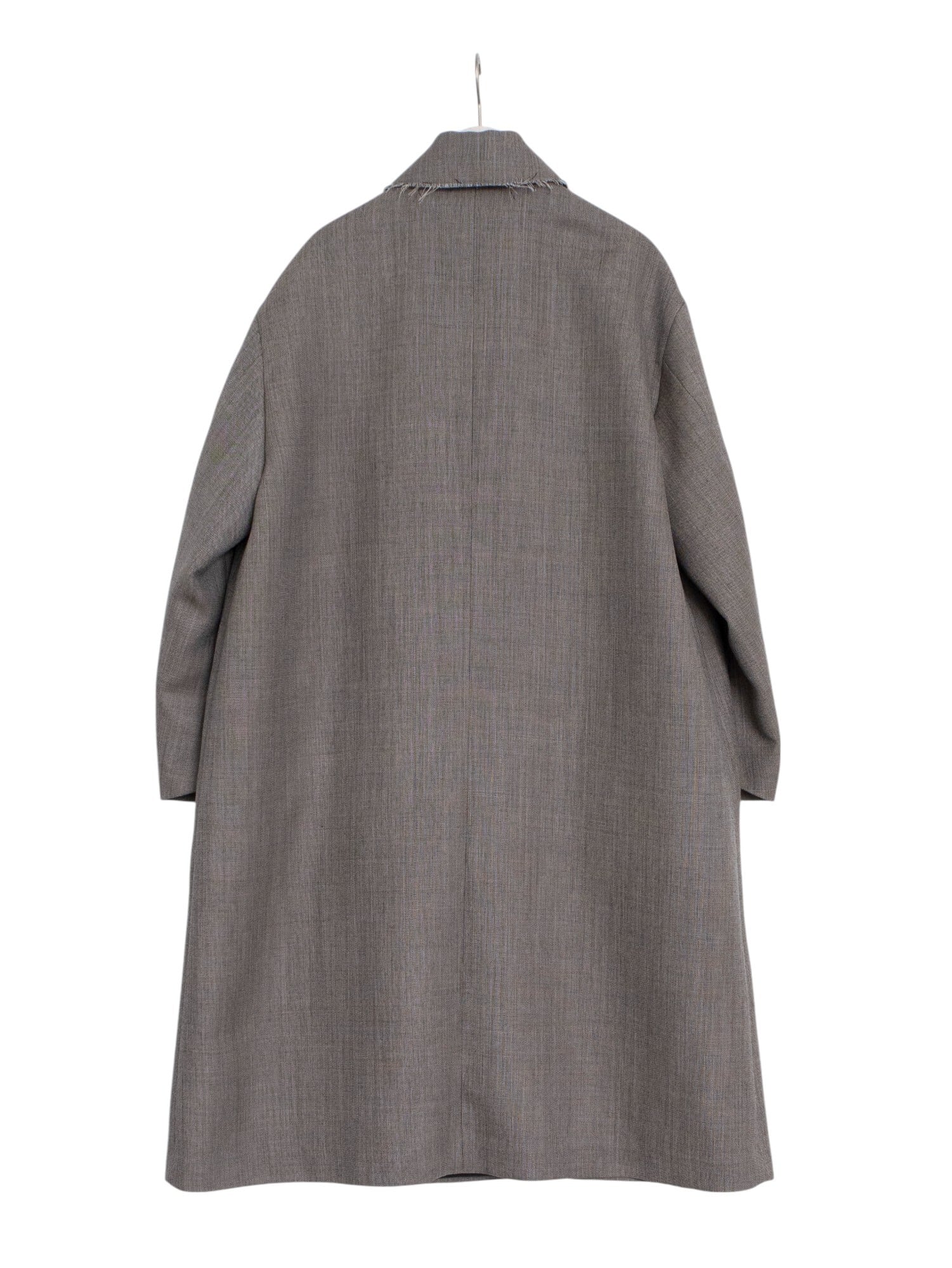 梳毛のシャークスキンリバー素材を贅沢に使用したロングコート。