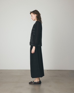 胸元にはサイドタックを入れることで立体的な表情を生み、動きに合わせて陰影が柔らかく揺らぎます。