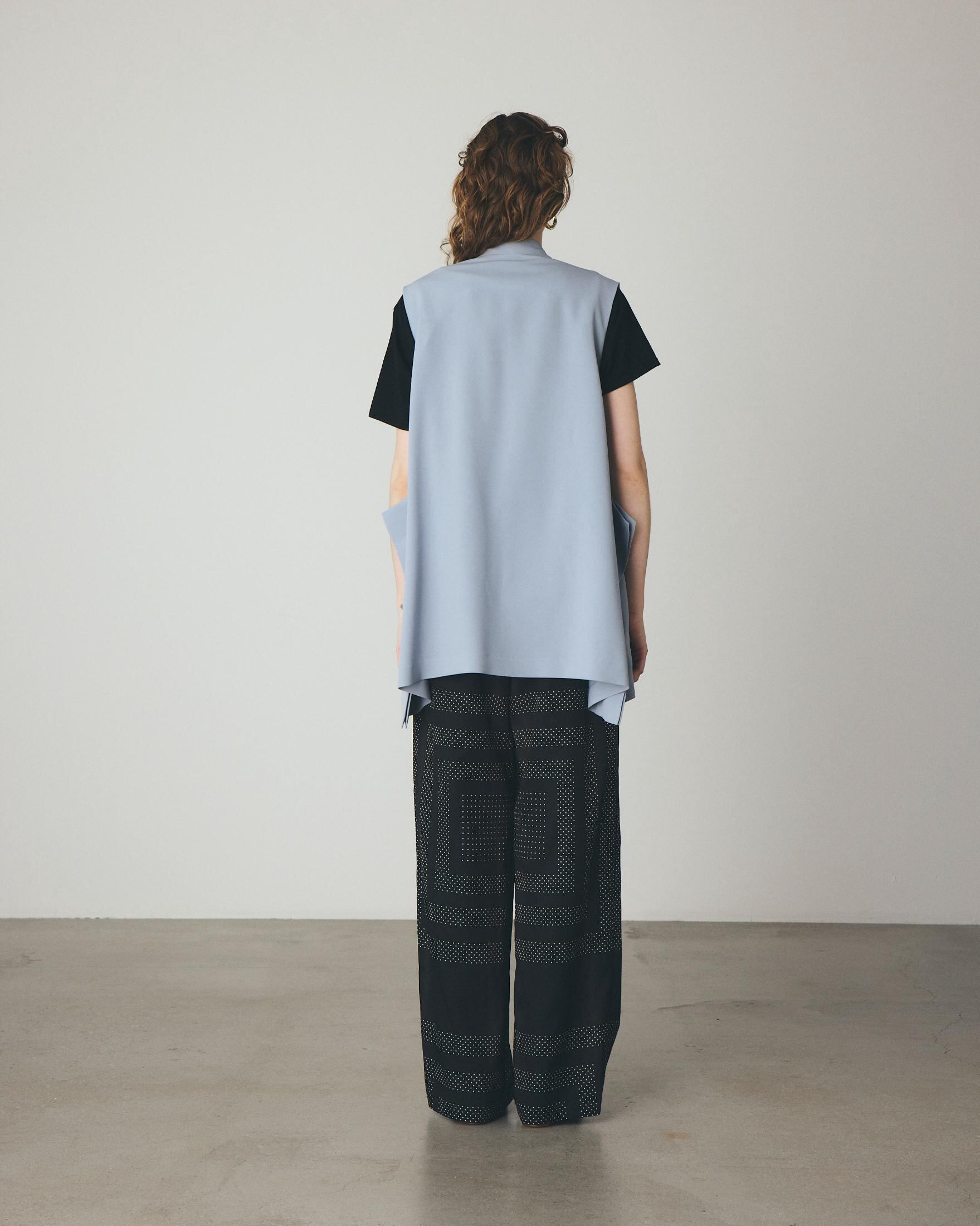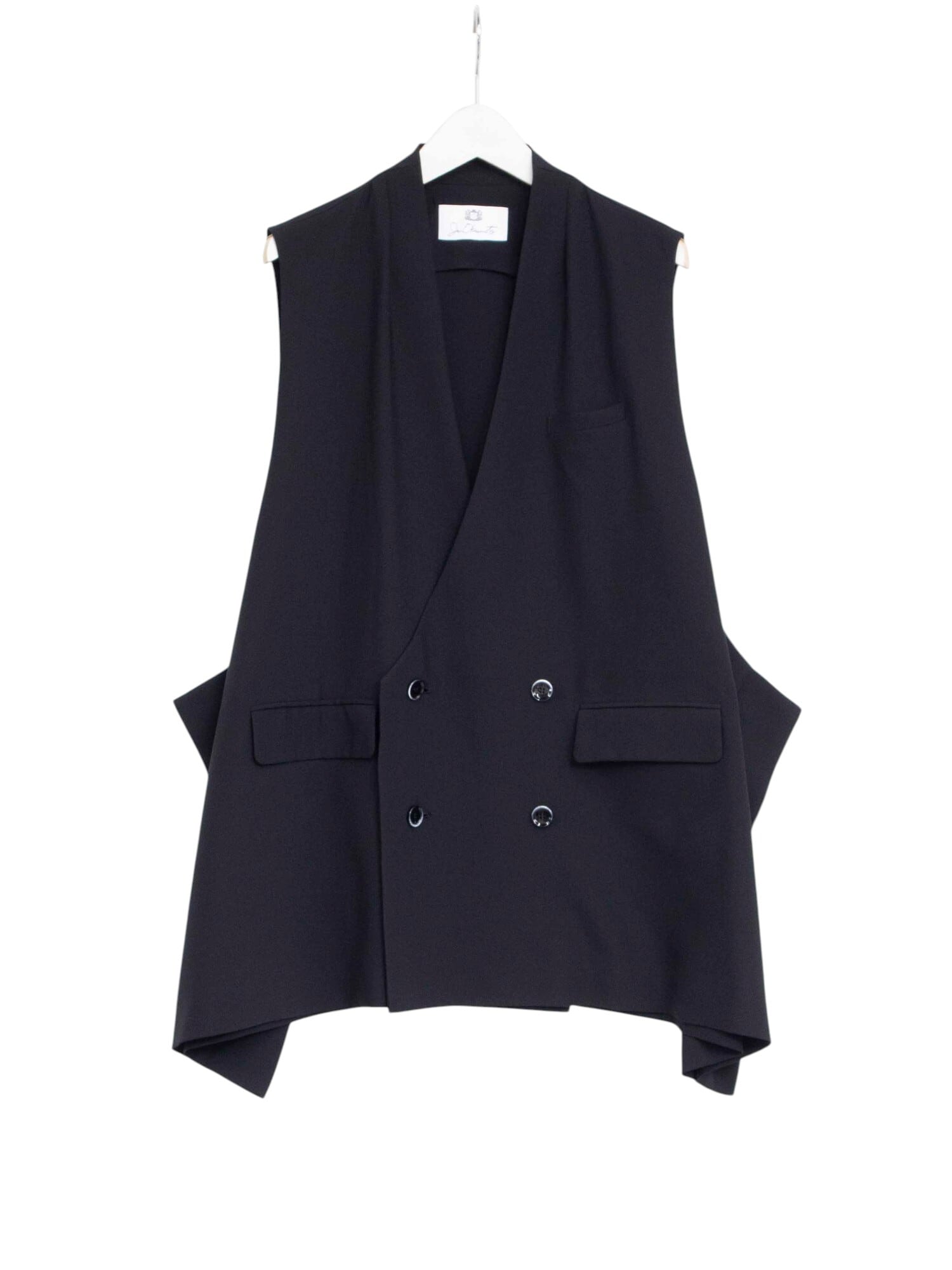 オーバーサイズのメンズライクなシルエットが特徴的なセミロングベスト。