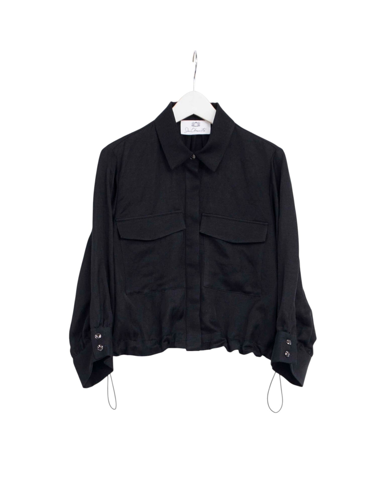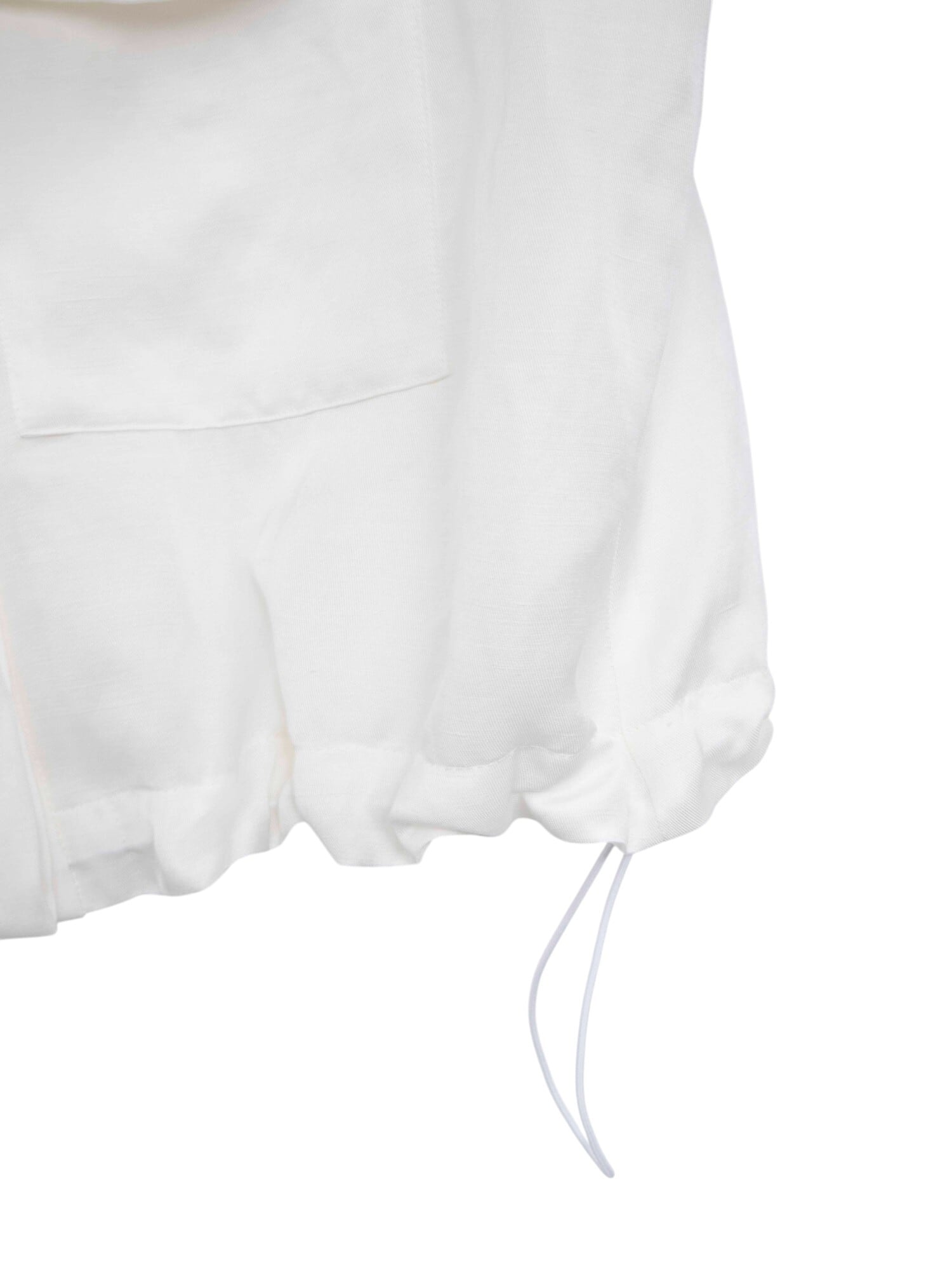 ディテール: ウエストドローコード、ショート丈、シルバーボタン、フラップポケット