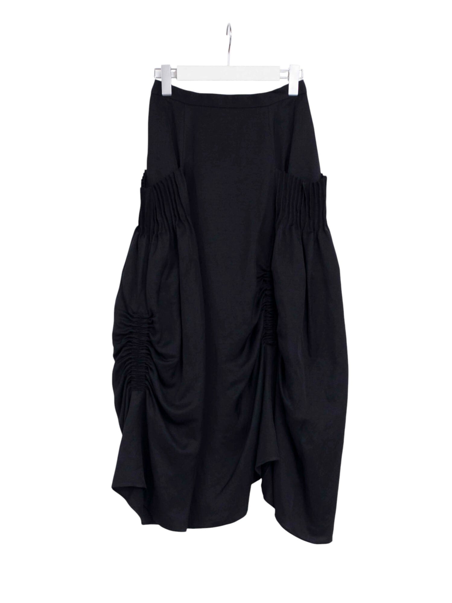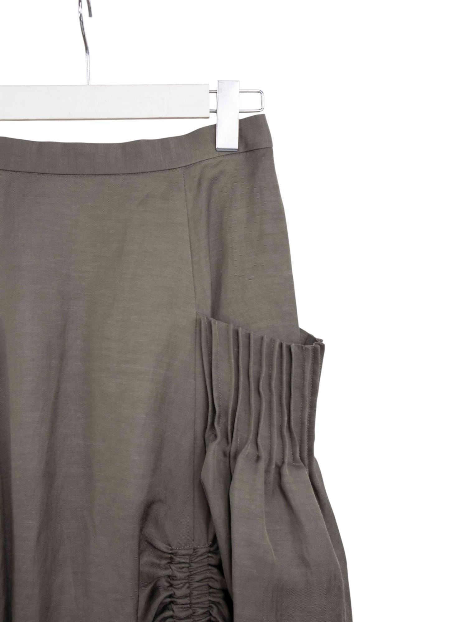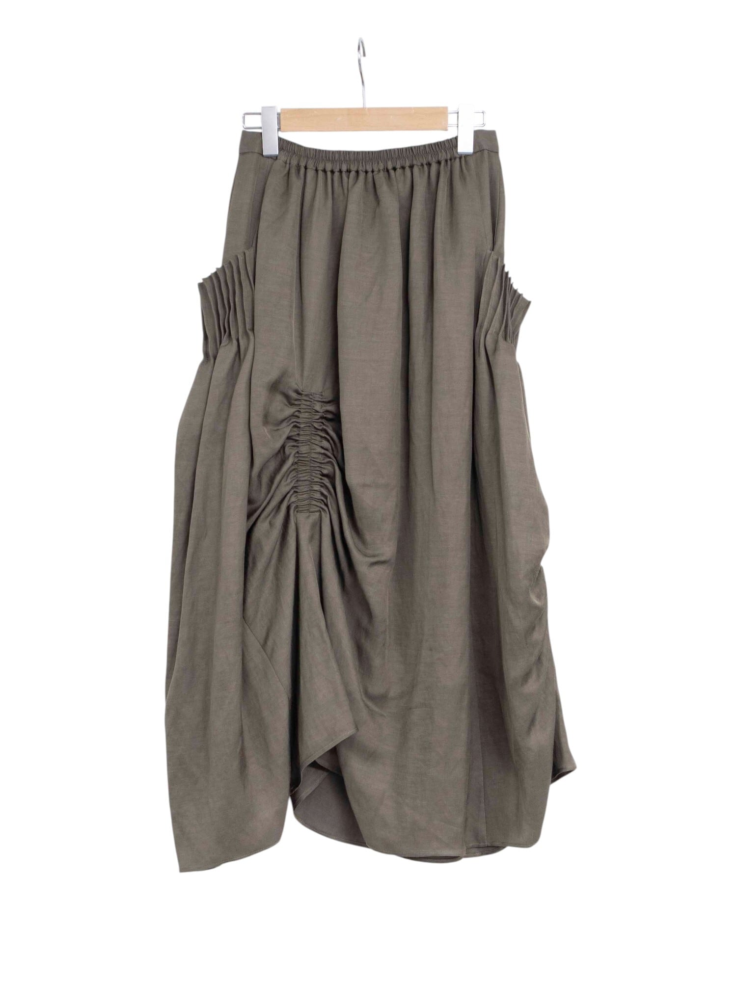 経糸にヴィスコース、緯糸にリネンを用いたツイル素材で仕立てたスカート。