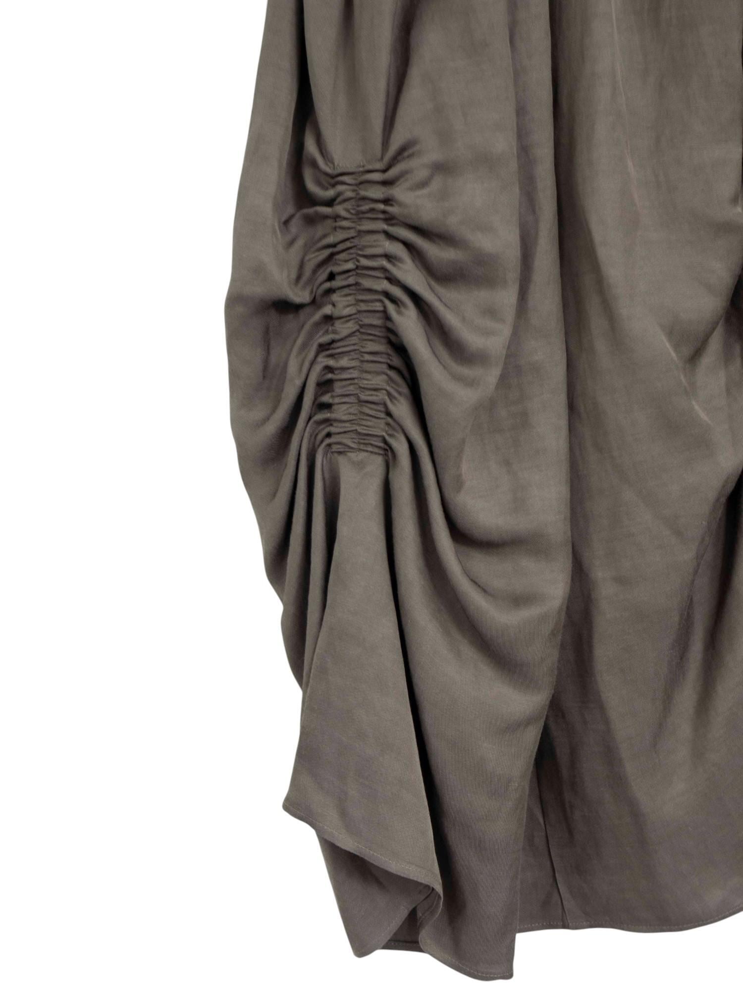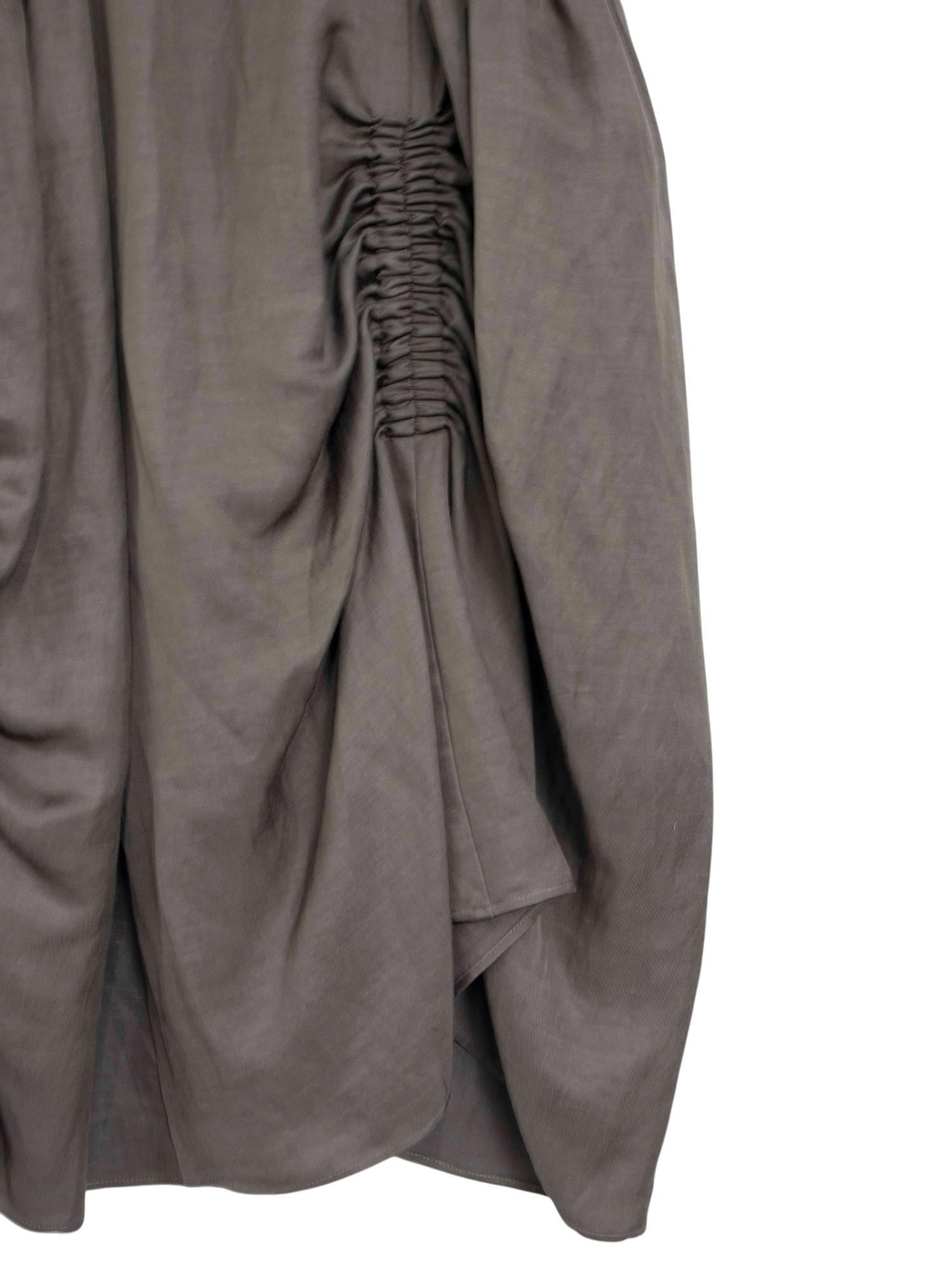 ディテール: 縦ギャザー、アシンメトリーデザイン、ロング丈