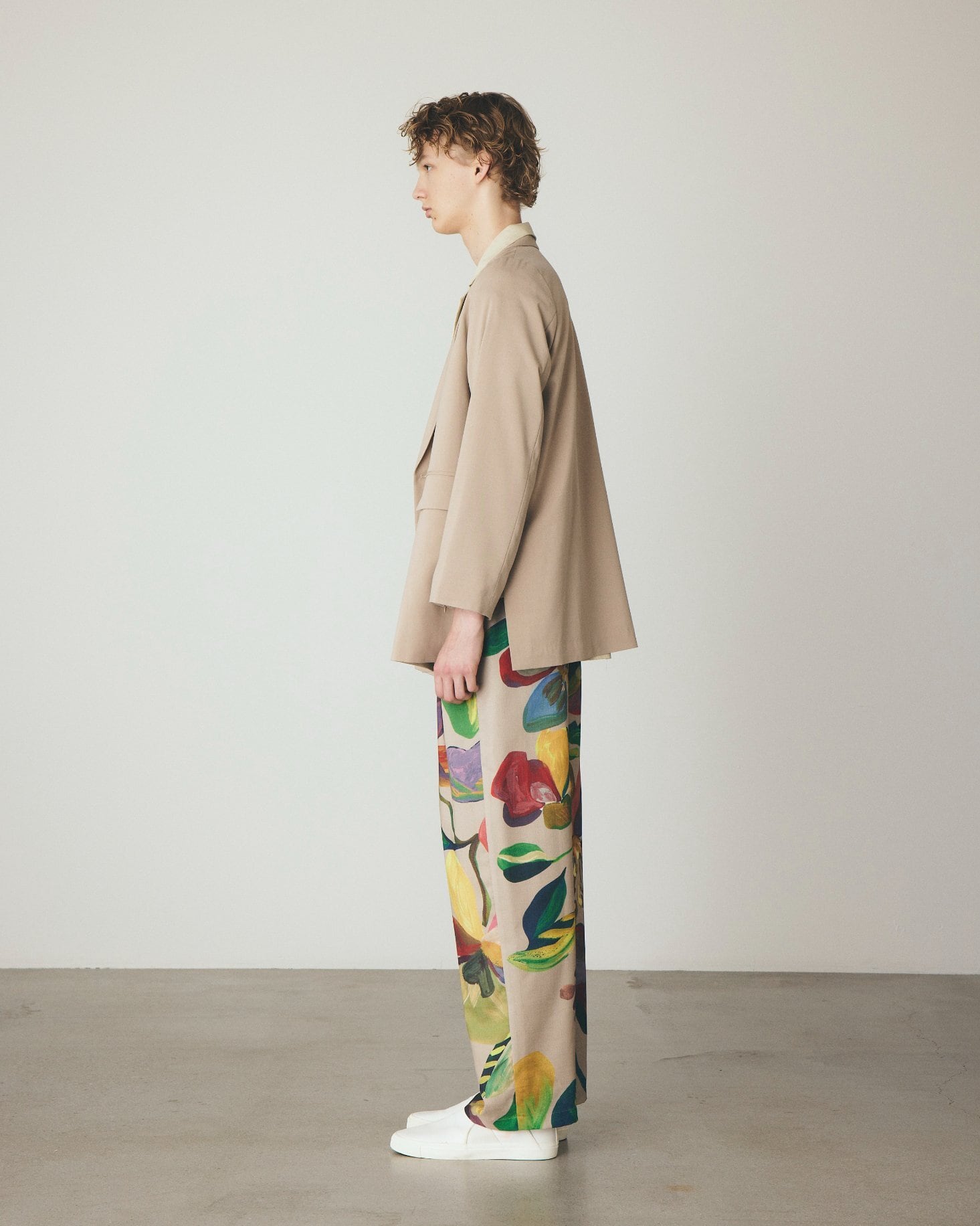 同素材のパンツとのセットアップもおすすめです。