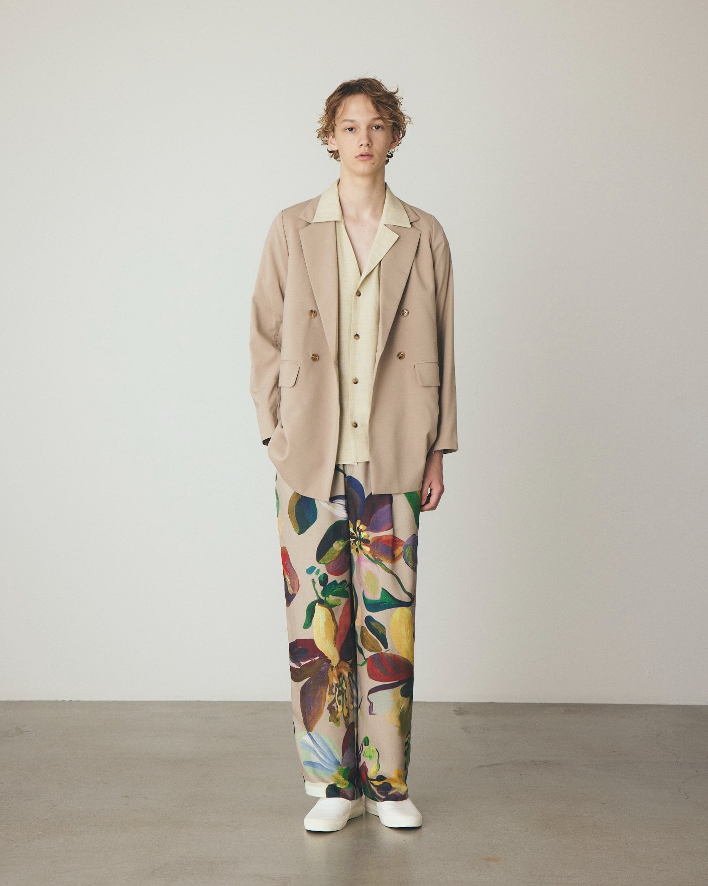 スタイリング: 同素材のパンツとセットアップでモードに/Tシャツの上に軽やかに羽織ってカジュアルに