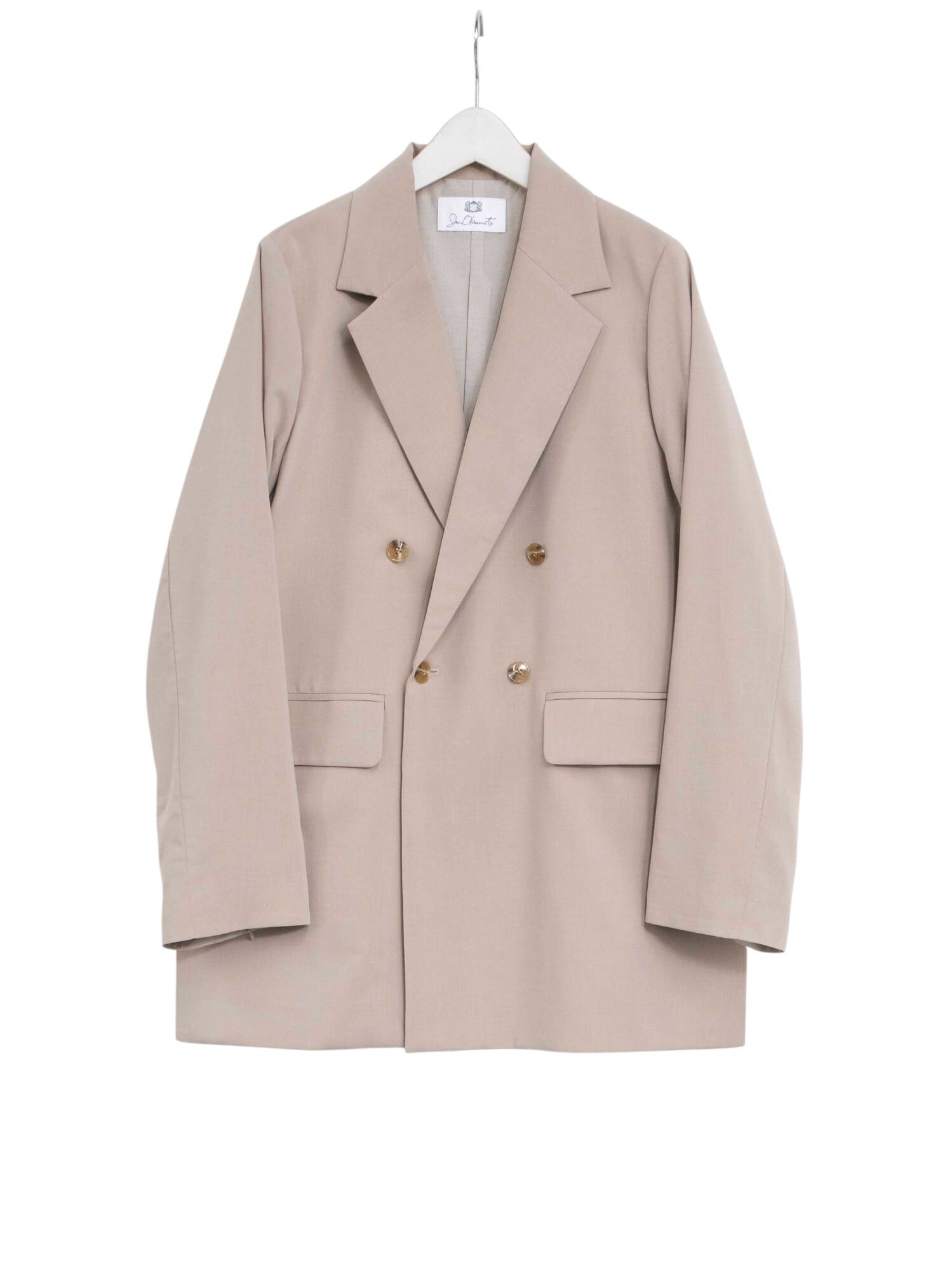 海辺の砂浜を思わせる、柔らかでナチュラルなトーンのダブルジャケット。