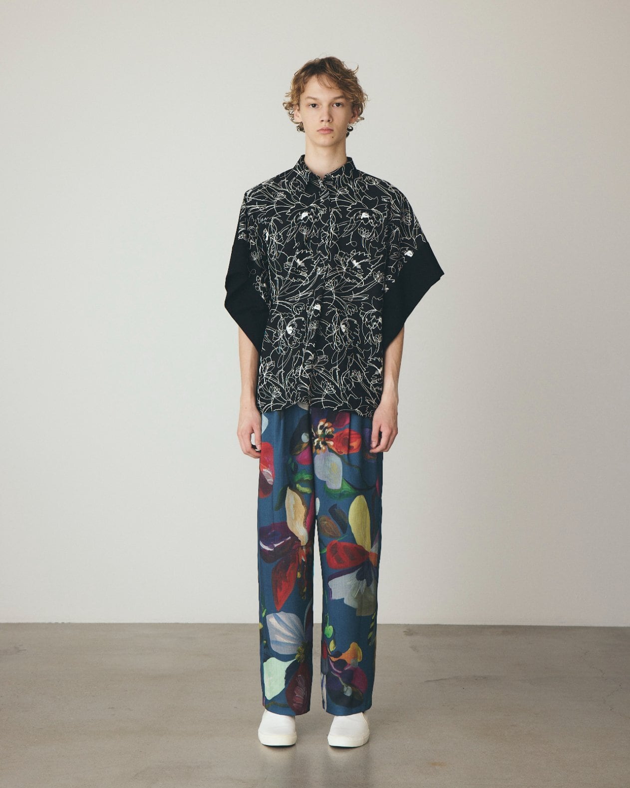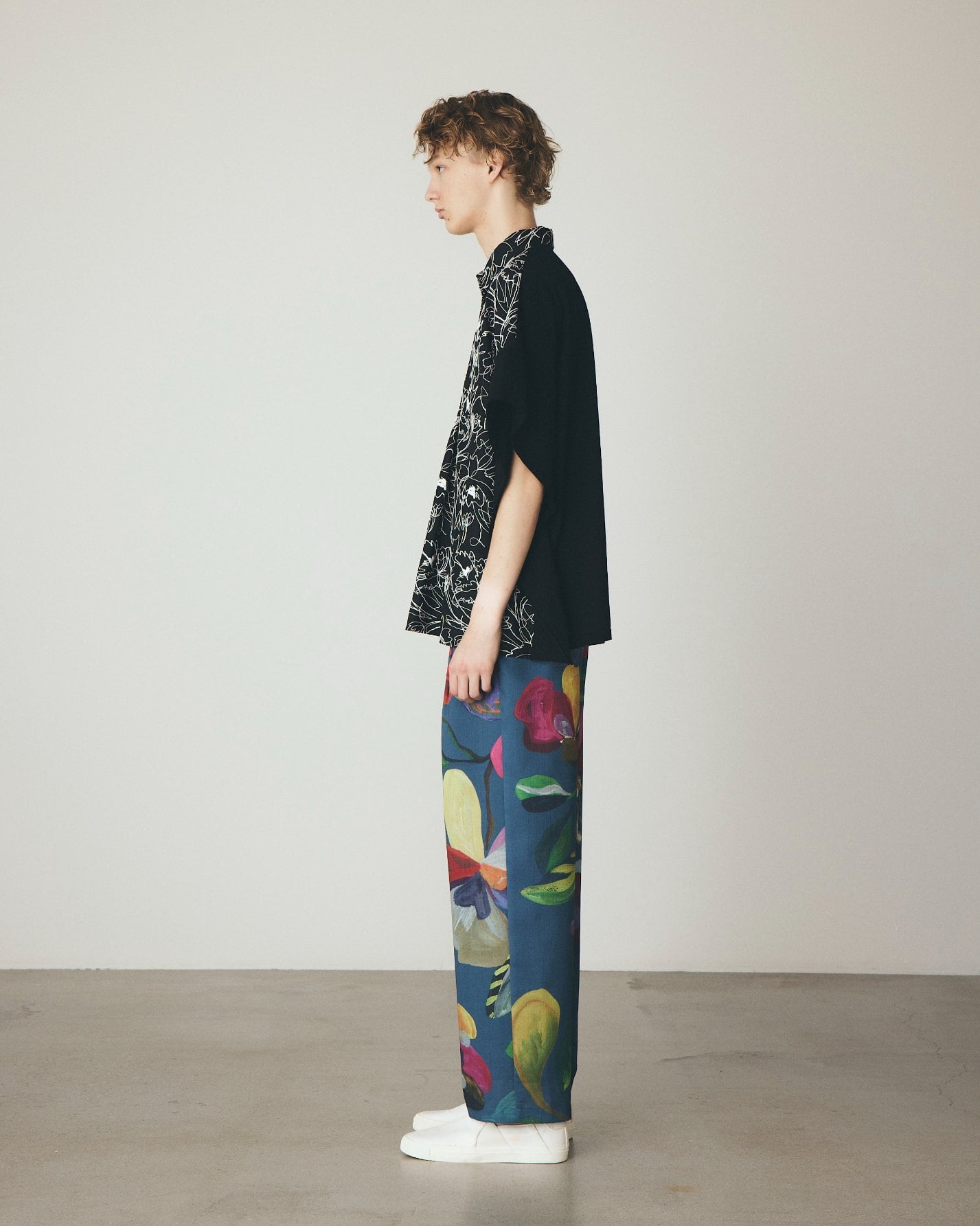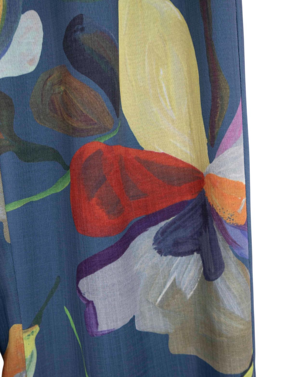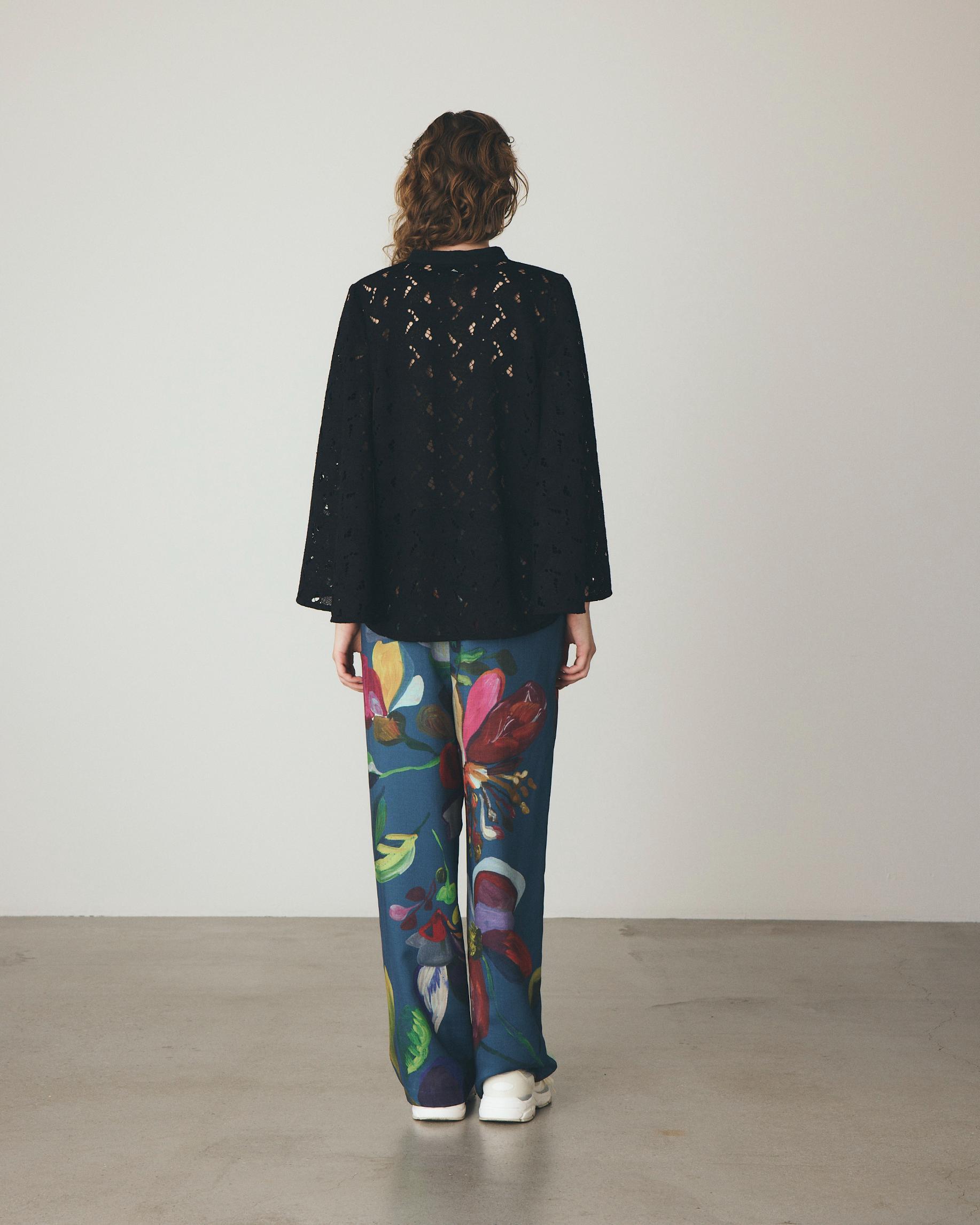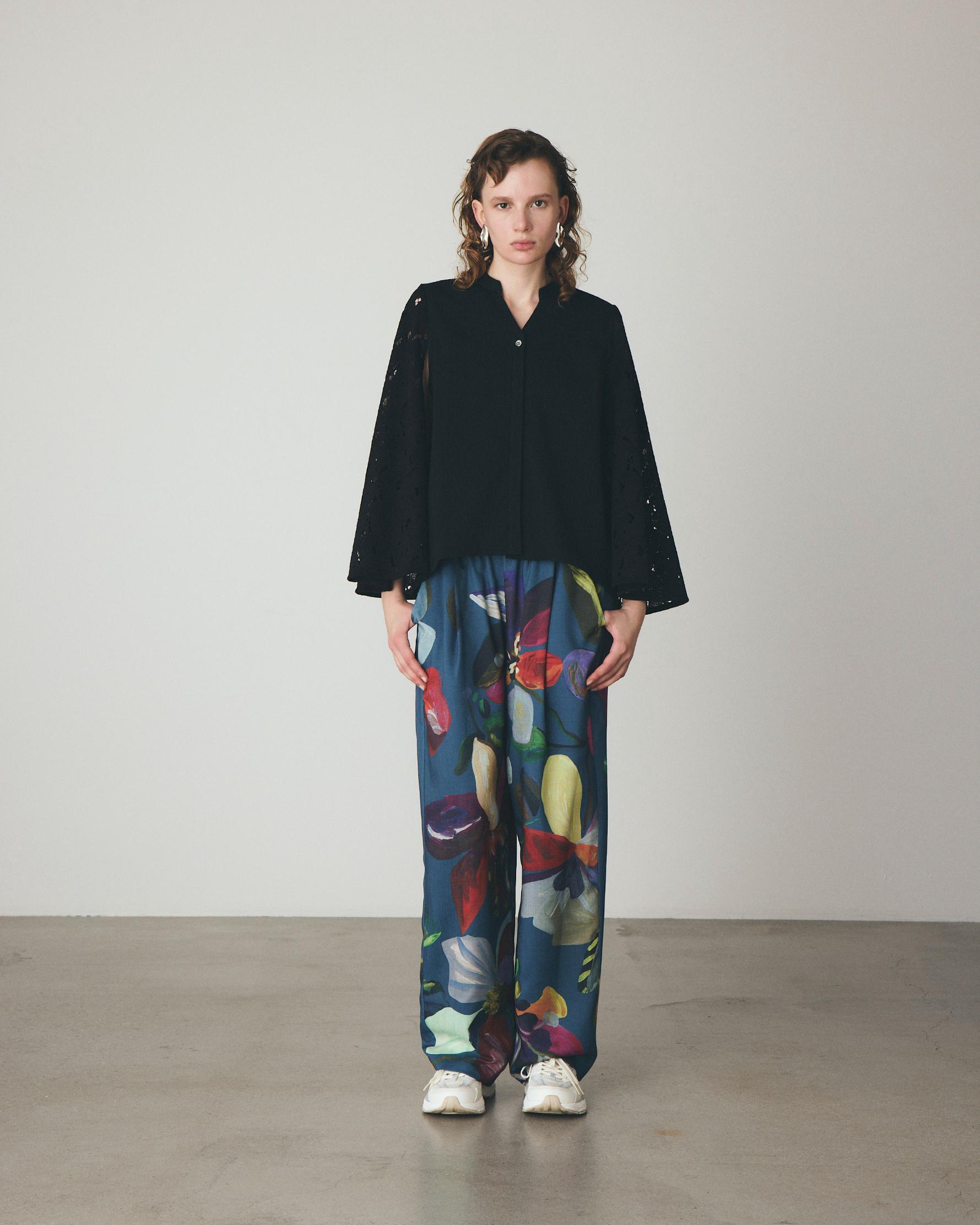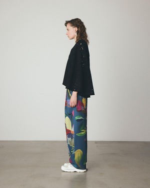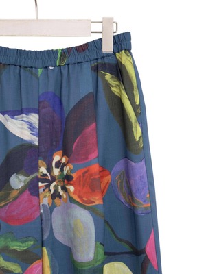 ピカソやゴーギャンが描いた花々から着想を得たフラワーモチーフを全面にプリントしたストレートパンツ。