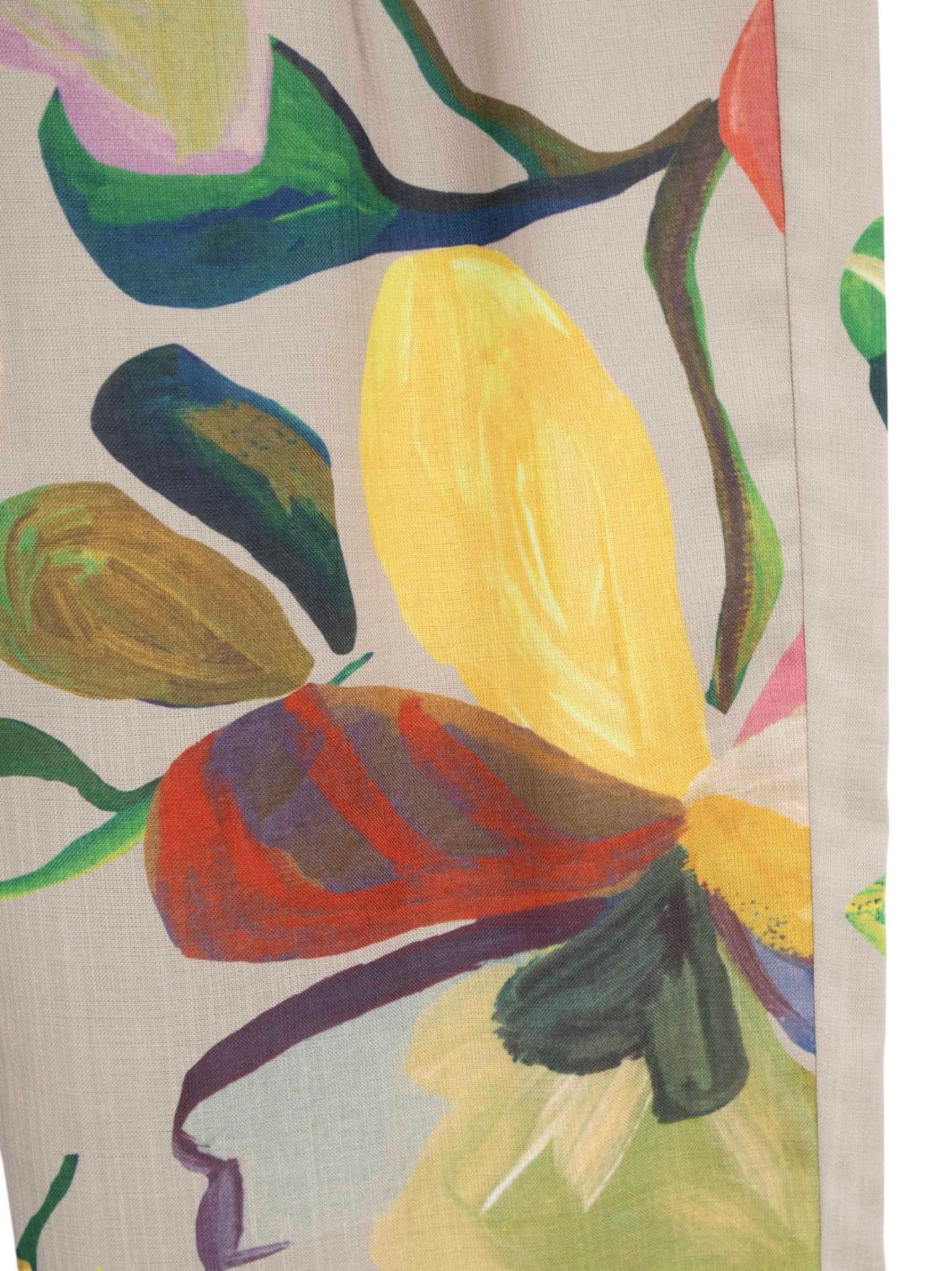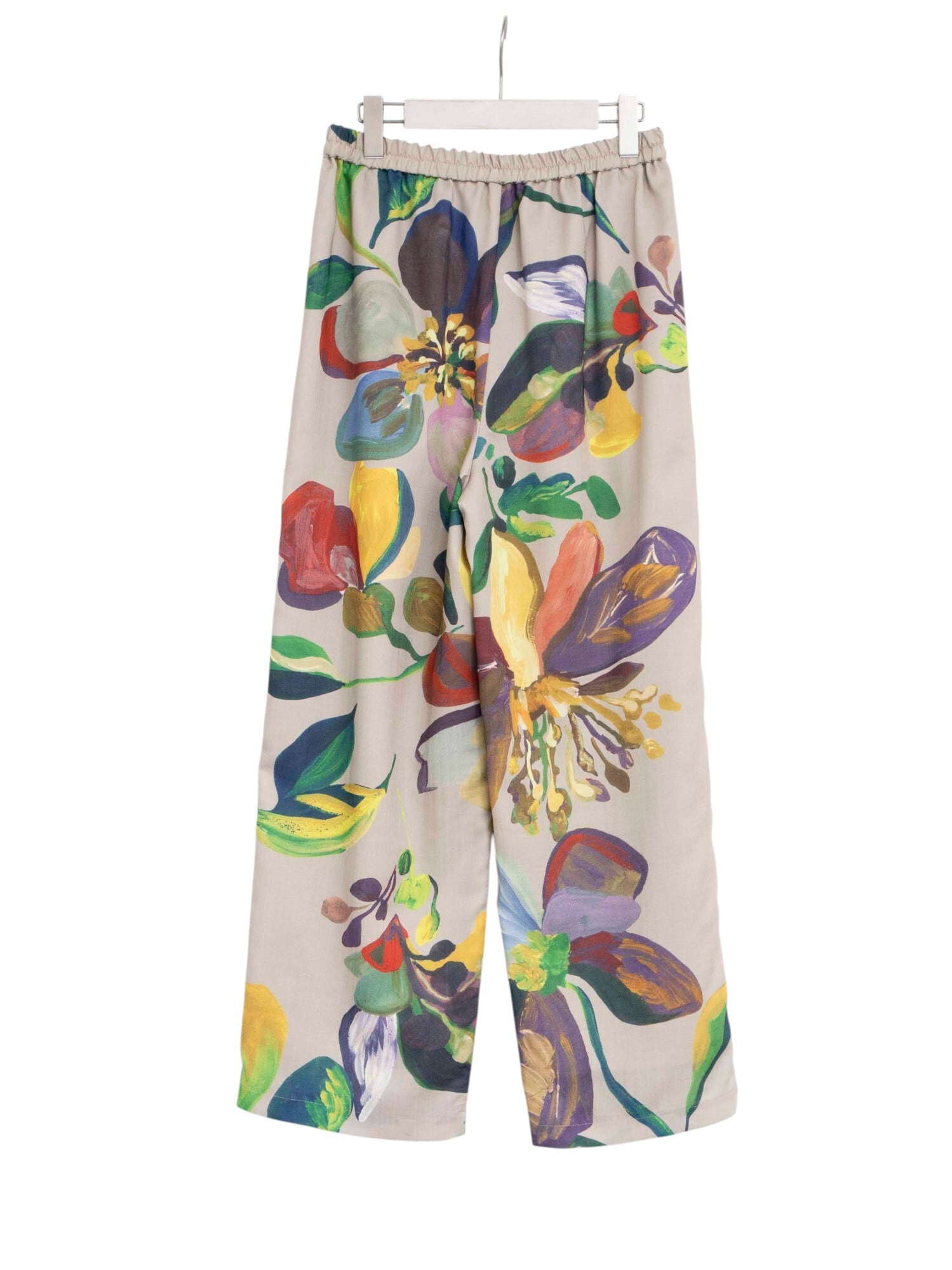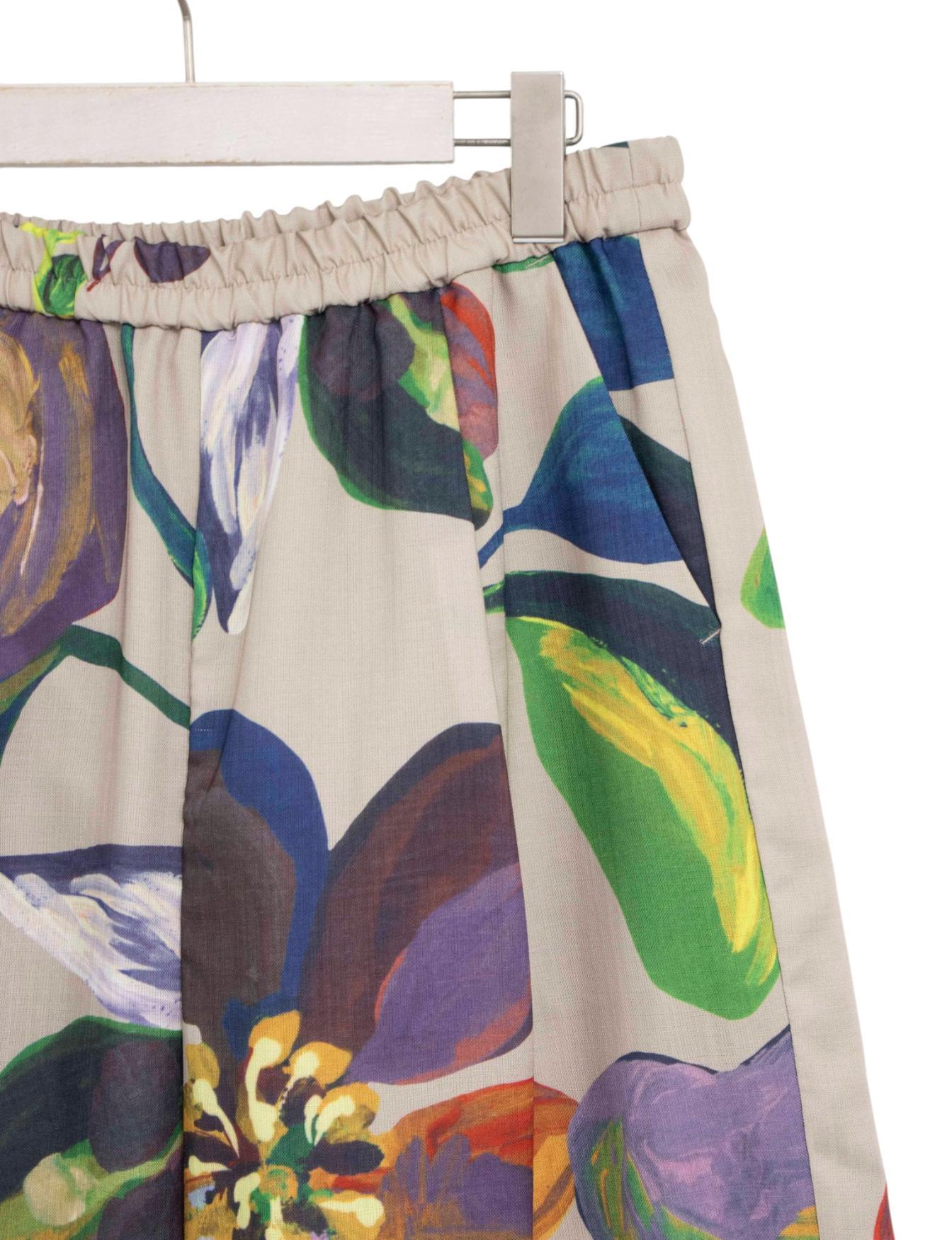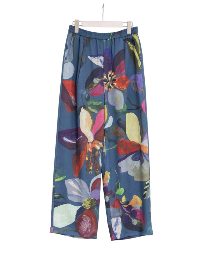 ピカソやゴーギャンが描いた花々から着想を得たフラワーモチーフを全面にプリントしたストレートパンツ。