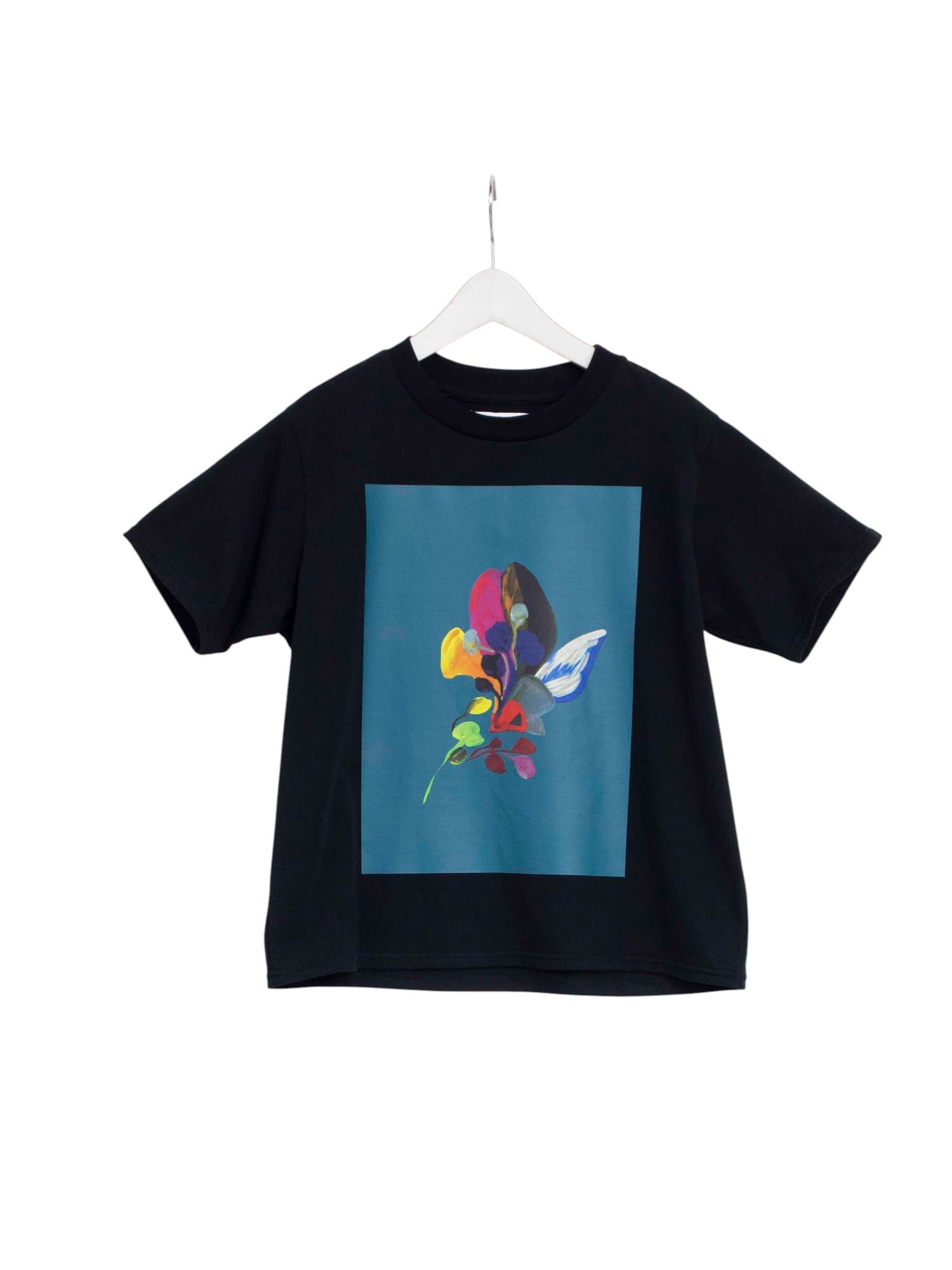 JUN OKAMOTO定番のTシャツシルエットに落とし込み、日常に馴染みながらもアートを楽しめる仕上がりです。