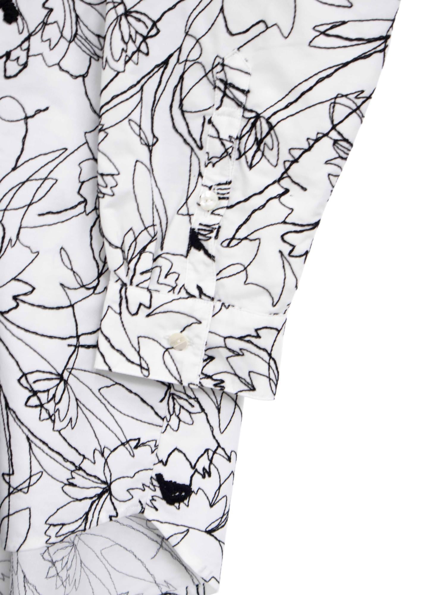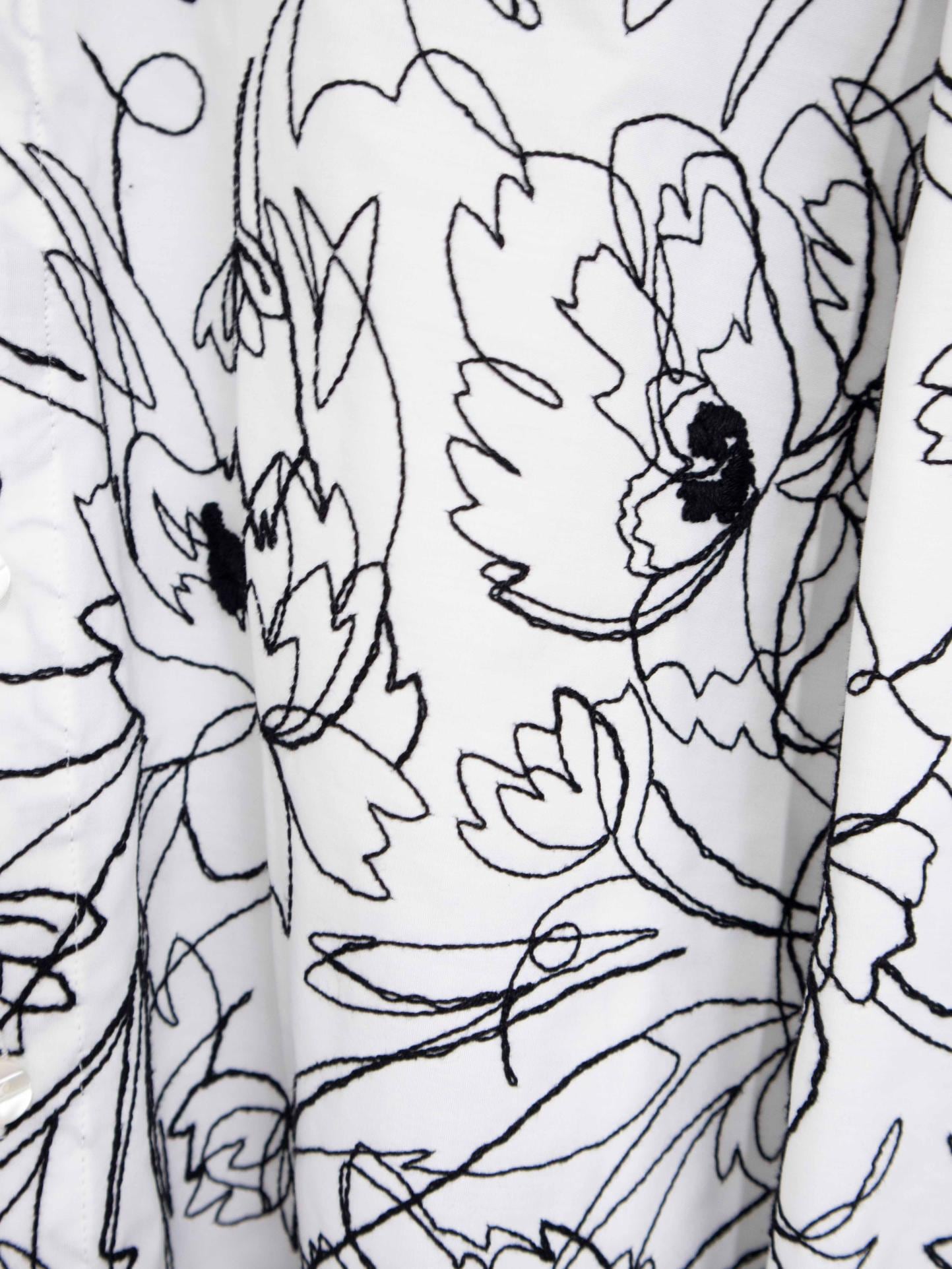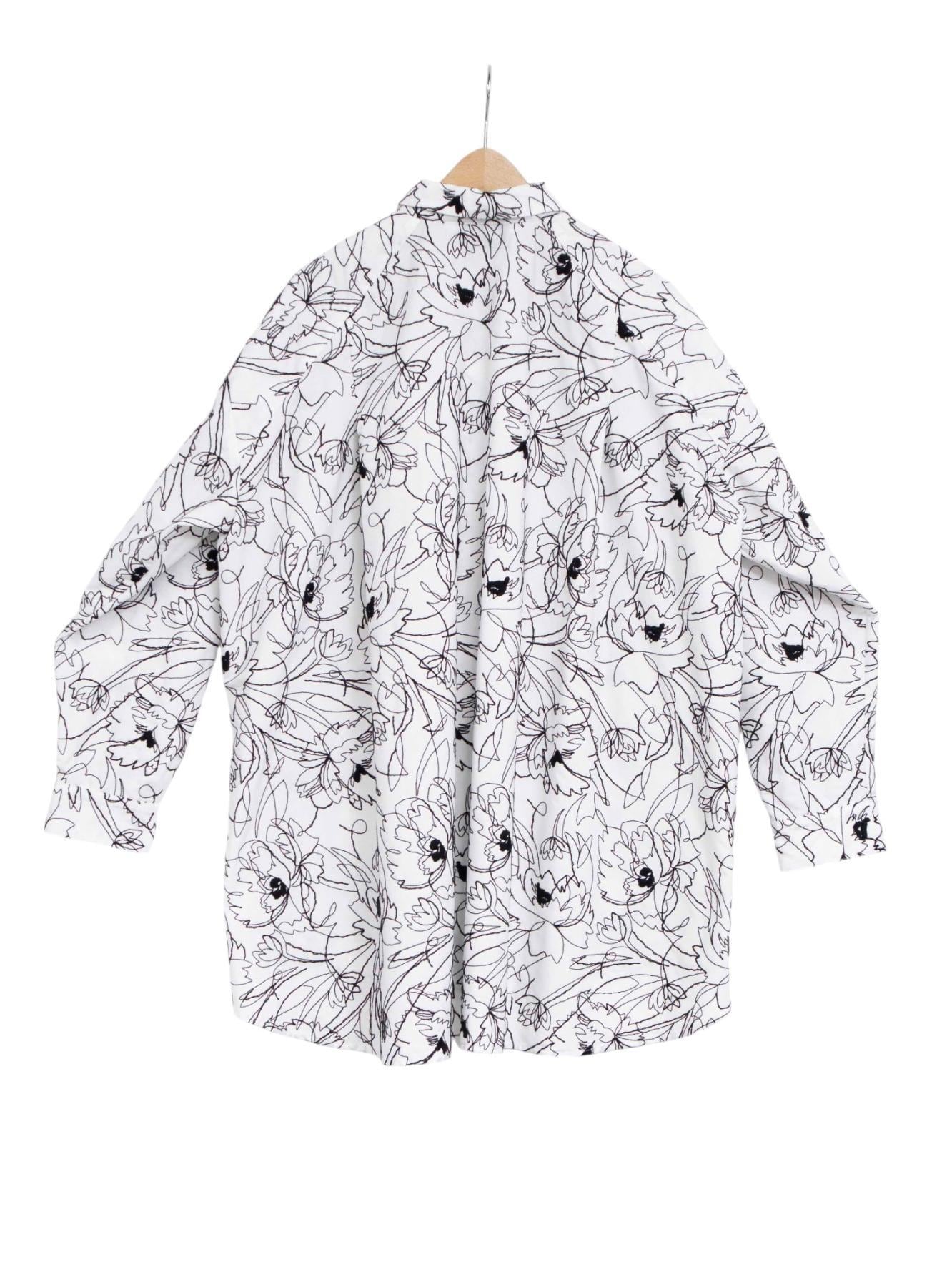 一筆書きの大胆なフラワーモチーフが全面を彩り、まるでキャンバスに描かれた線画を纏うような存在感を放ちます。