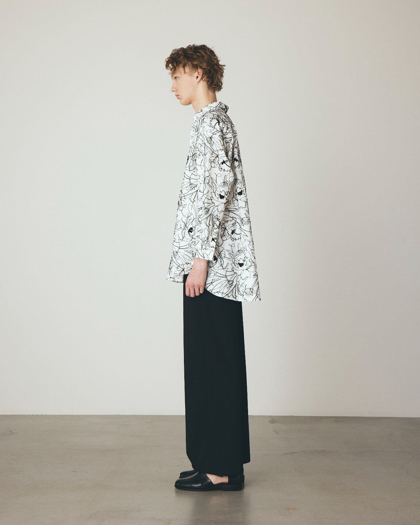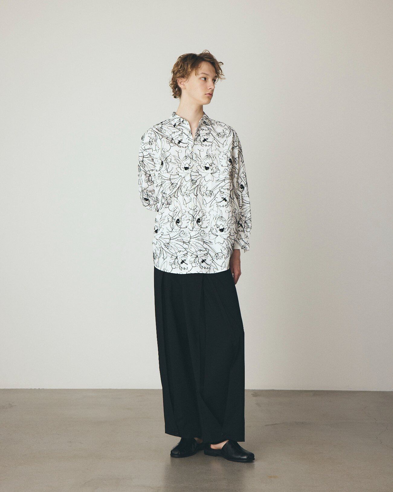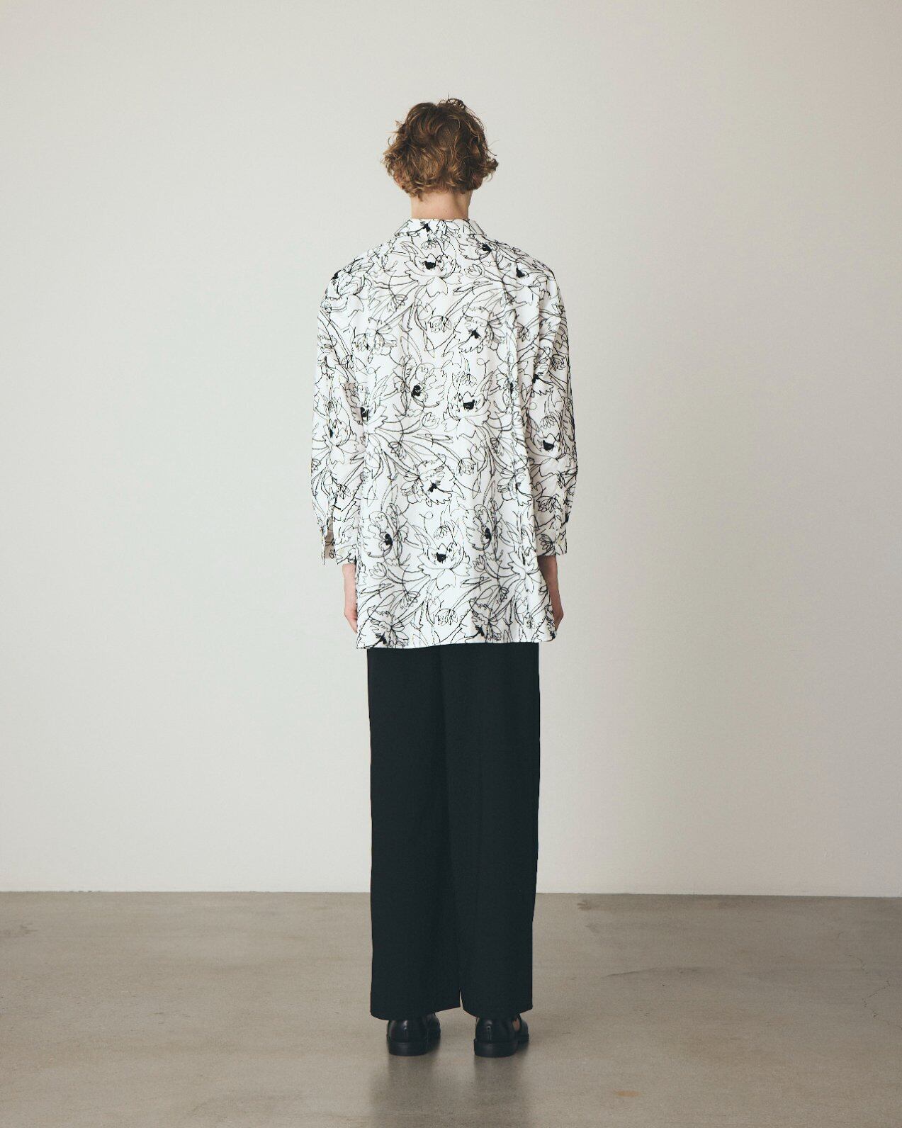 JUN OKAMOTO定番のオーバーサイズシャツとして、シンプルに羽織るだけでアートを纏うようなスタイルが完成します。