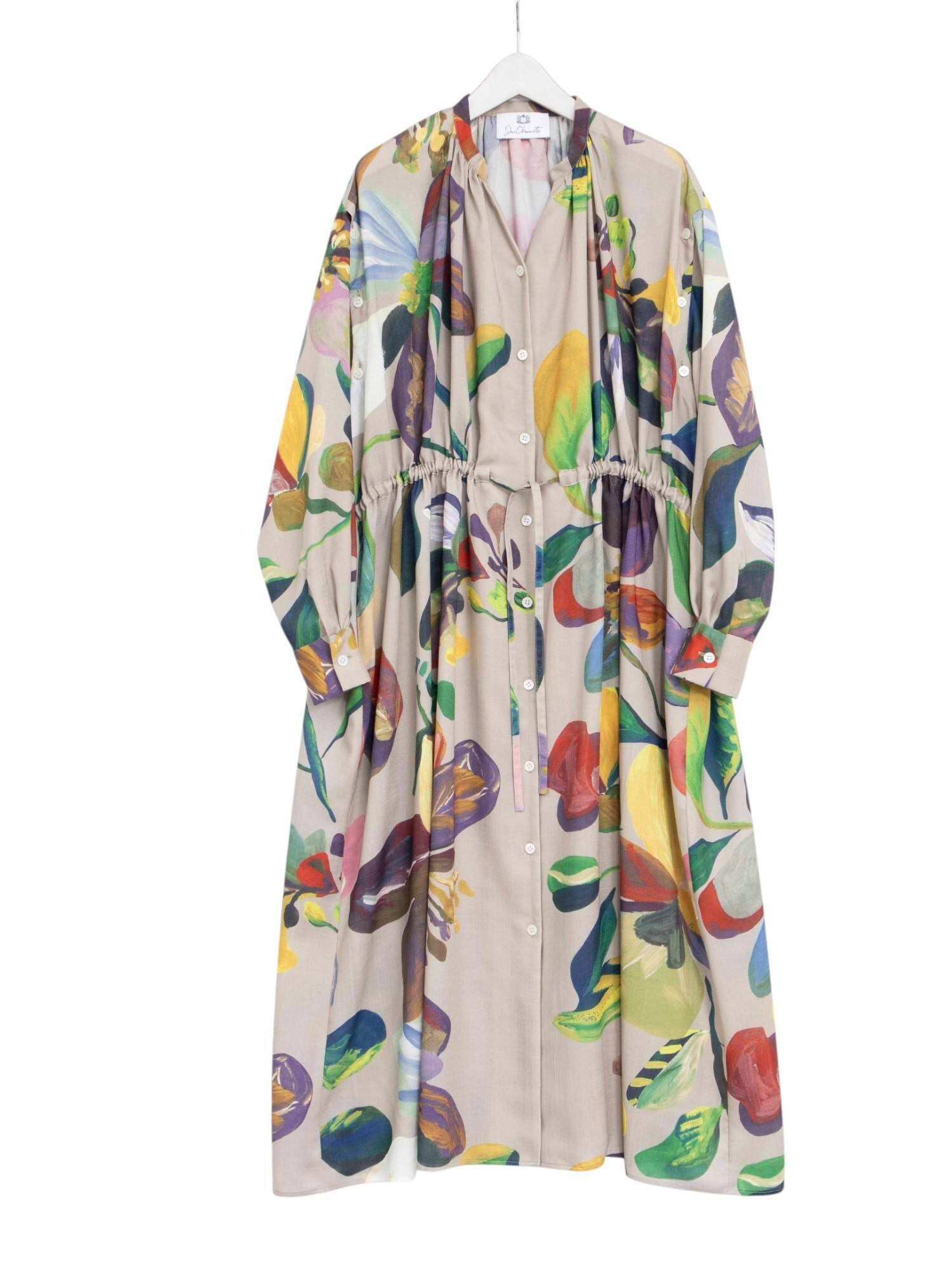 ピカソやゴーギャンが描いた花々から着想を得た、色彩豊かなフラワーモチーフを大胆に全面にプリントしたシャツワンピース。