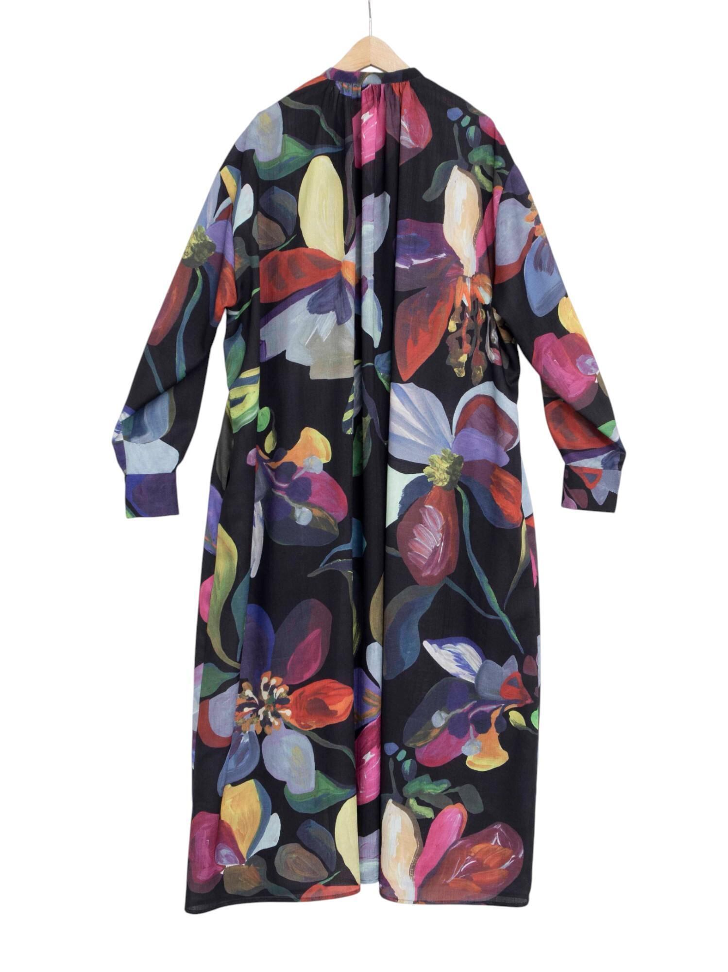 ピカソやゴーギャンが描いた花々から着想を得た、色彩豊かなフラワーモチーフを大胆に全面にプリントしたシャツワンピース。
